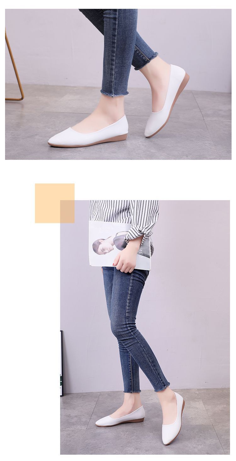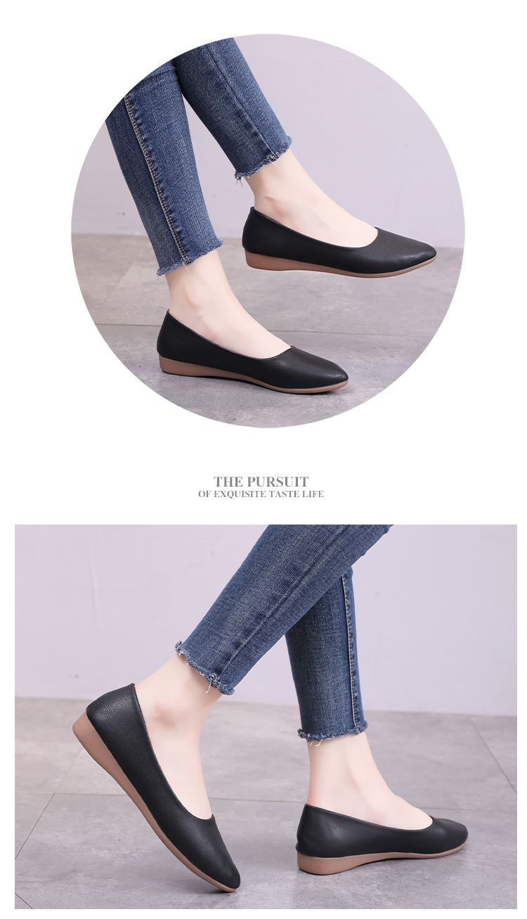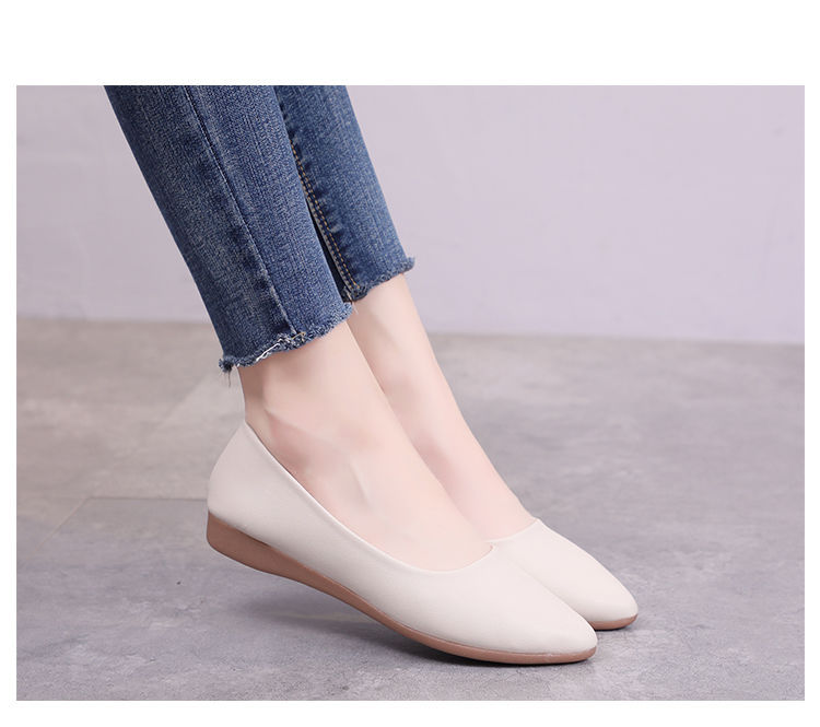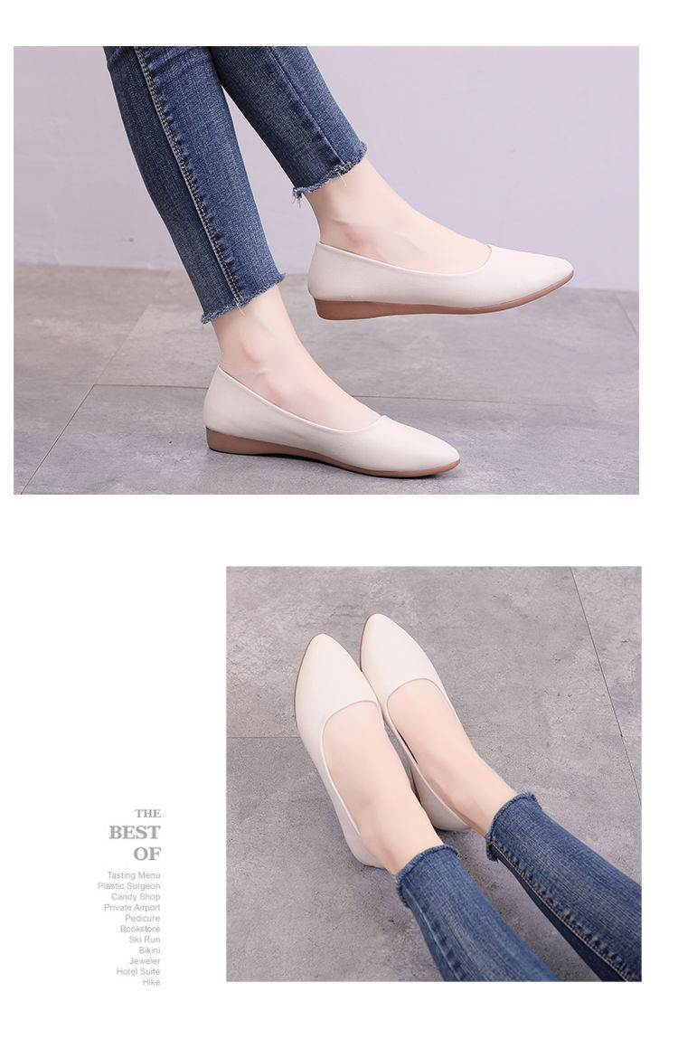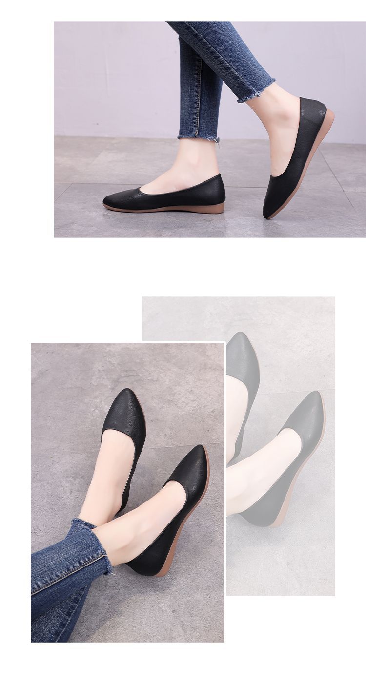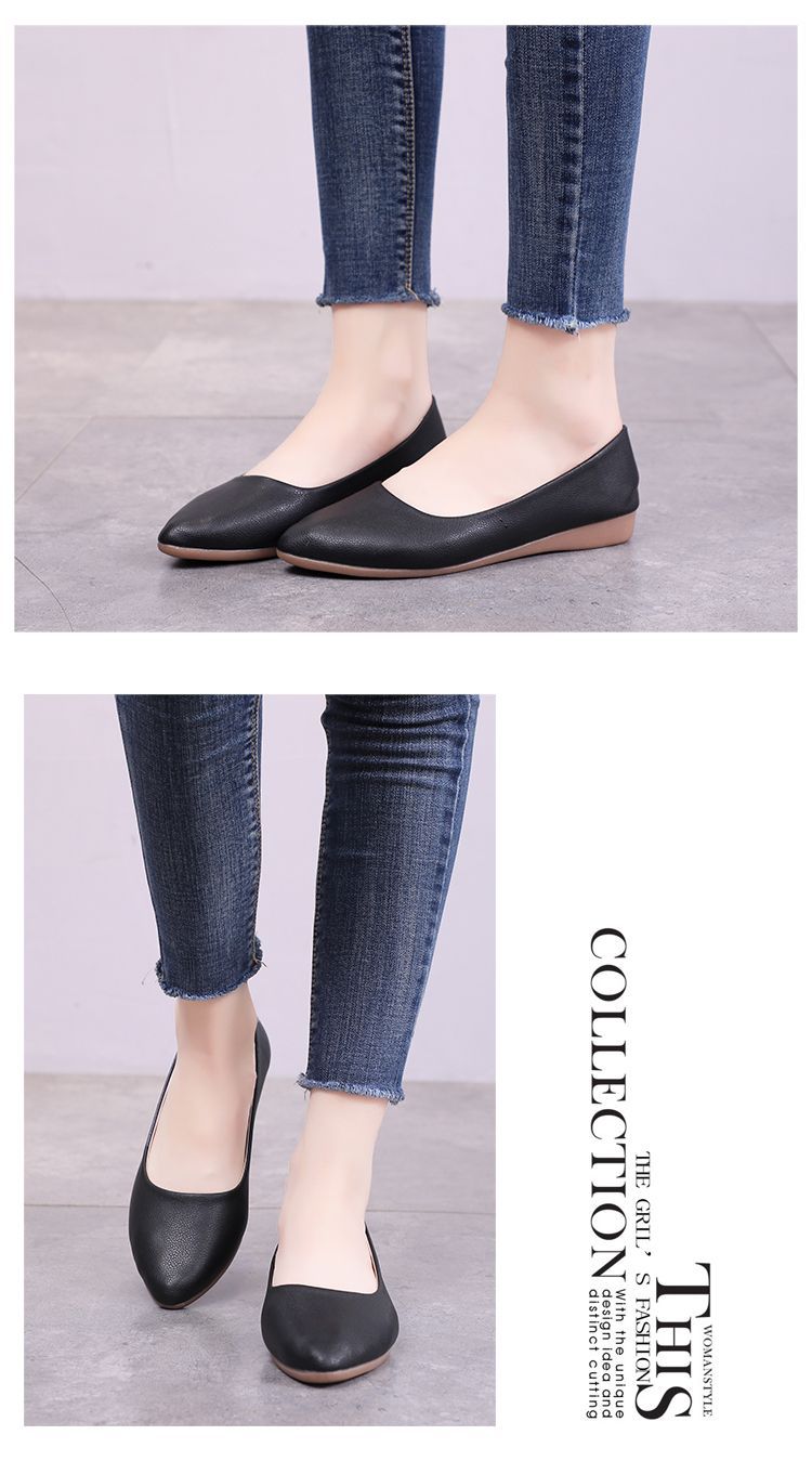 뾰족한 신발 여성 플랫 소프트 하단 부드러운 표면 전문 스튜어디스 가을 새로운 여성 신발 편안한 가죽 신발 호텔 작업 신발스토어 가기