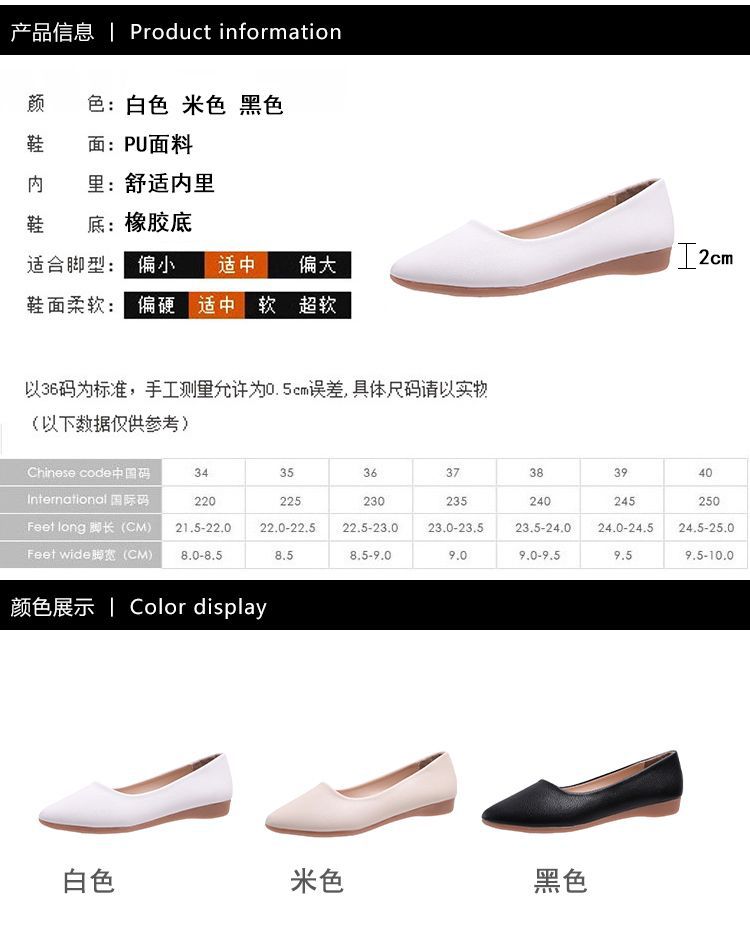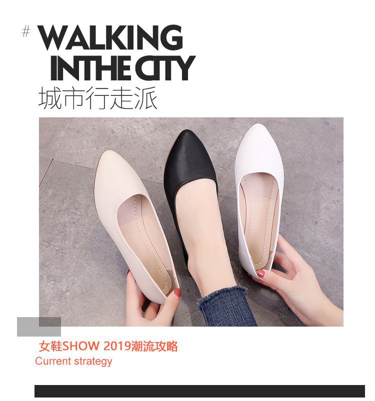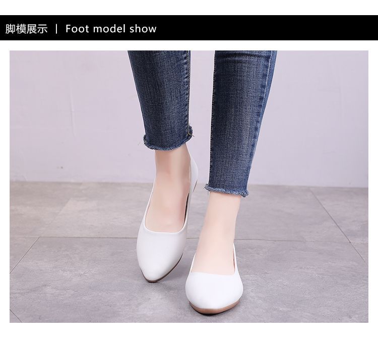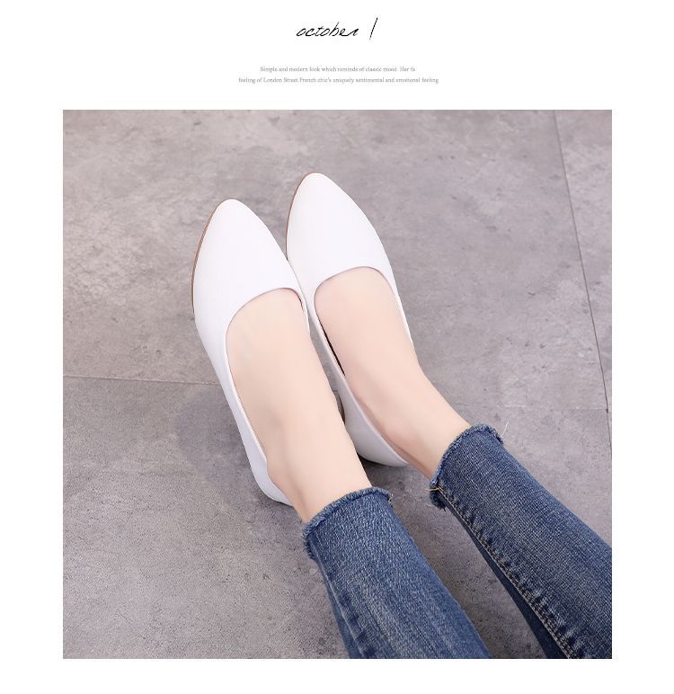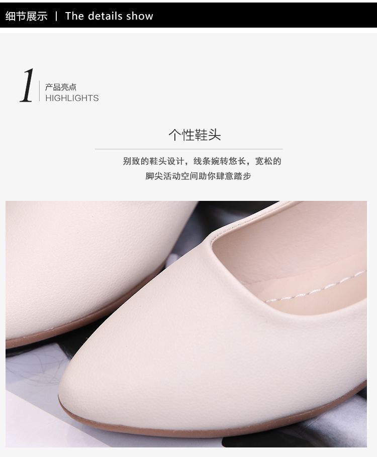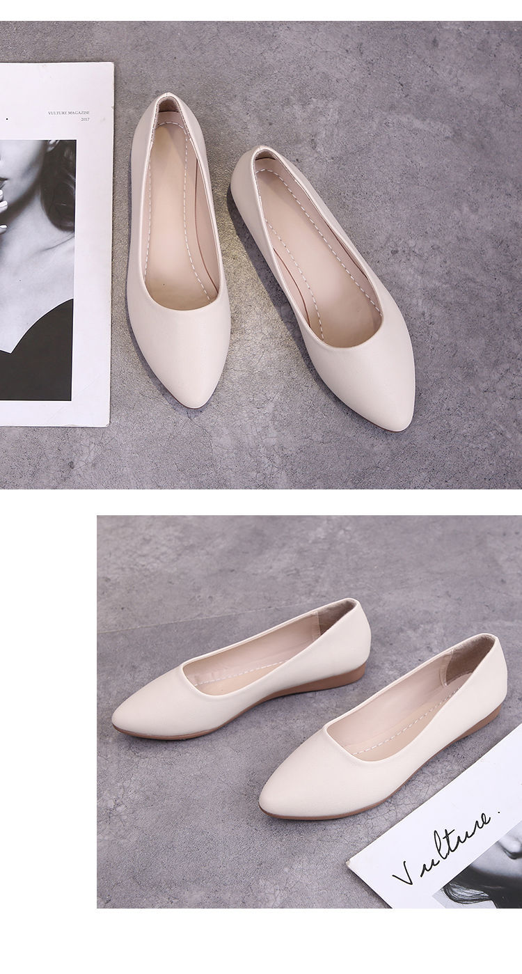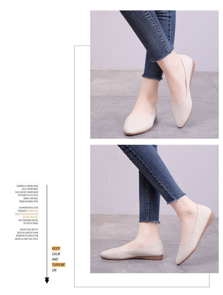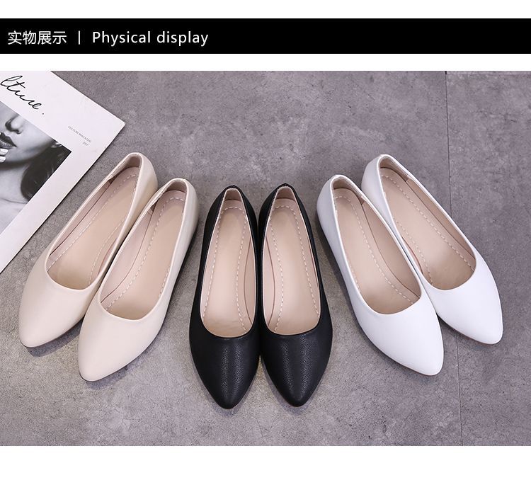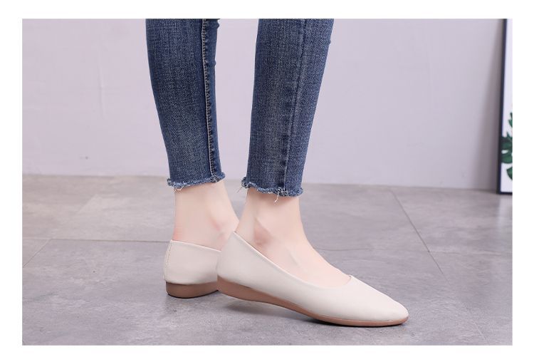 뾰족한 신발 여성 플랫 소프트 하단 부드러운 표면 전문 스튜어디스 가을 새로운 여성 신발 편안한 가죽 신발 호텔 작업 신발스토어 가기
