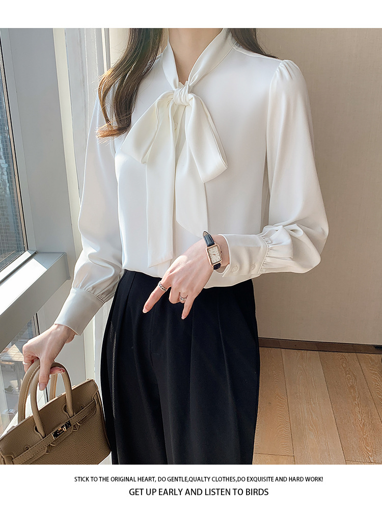 재고 2025 봄 화이트 활 리본 셔츠 여성용 긴 소매 쉬폰 슈퍼 페어리 웨스턴 스타일 셔츠 요정 탑