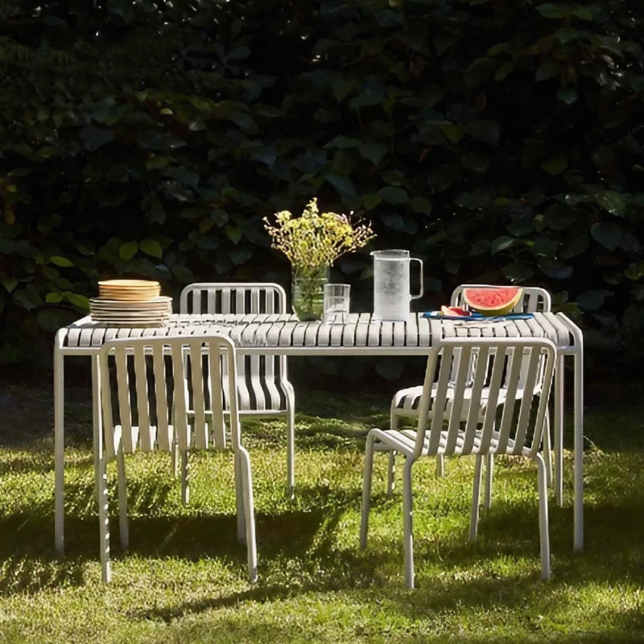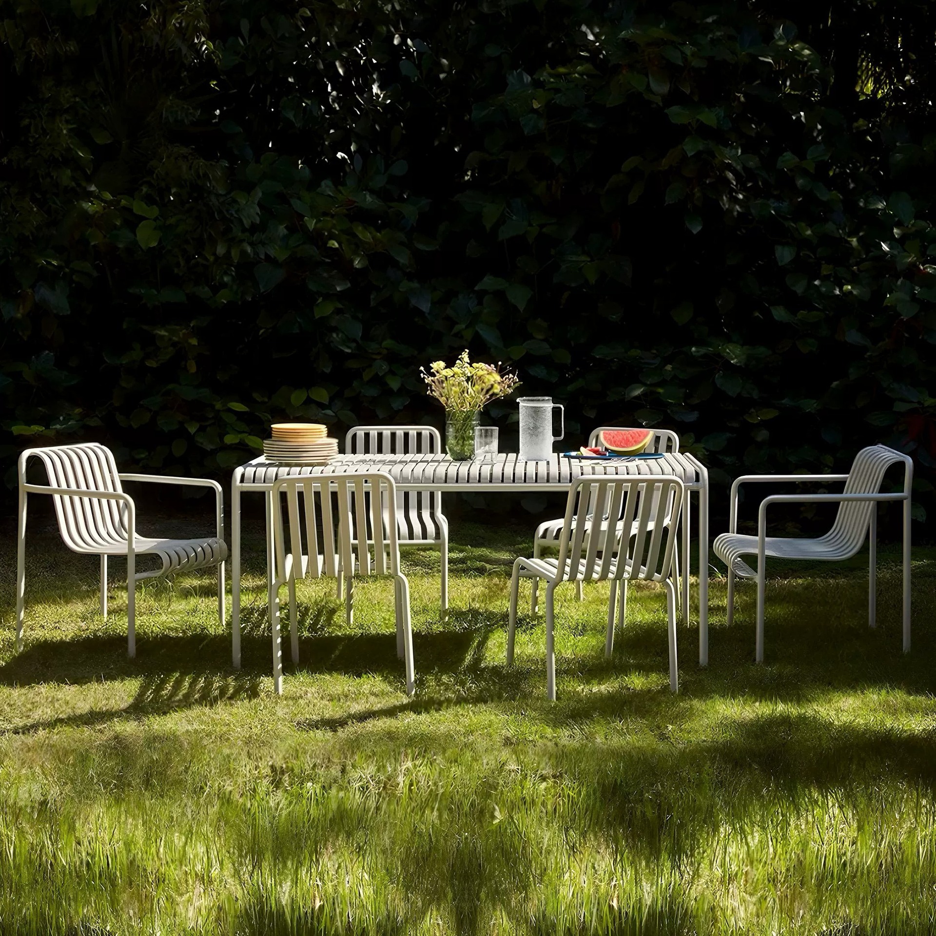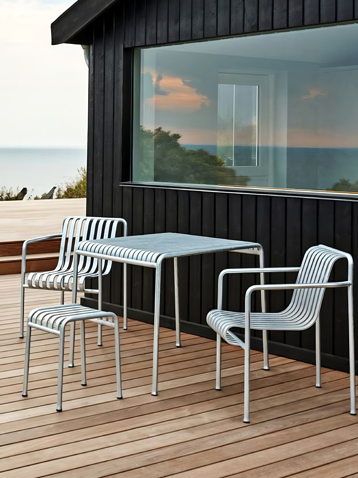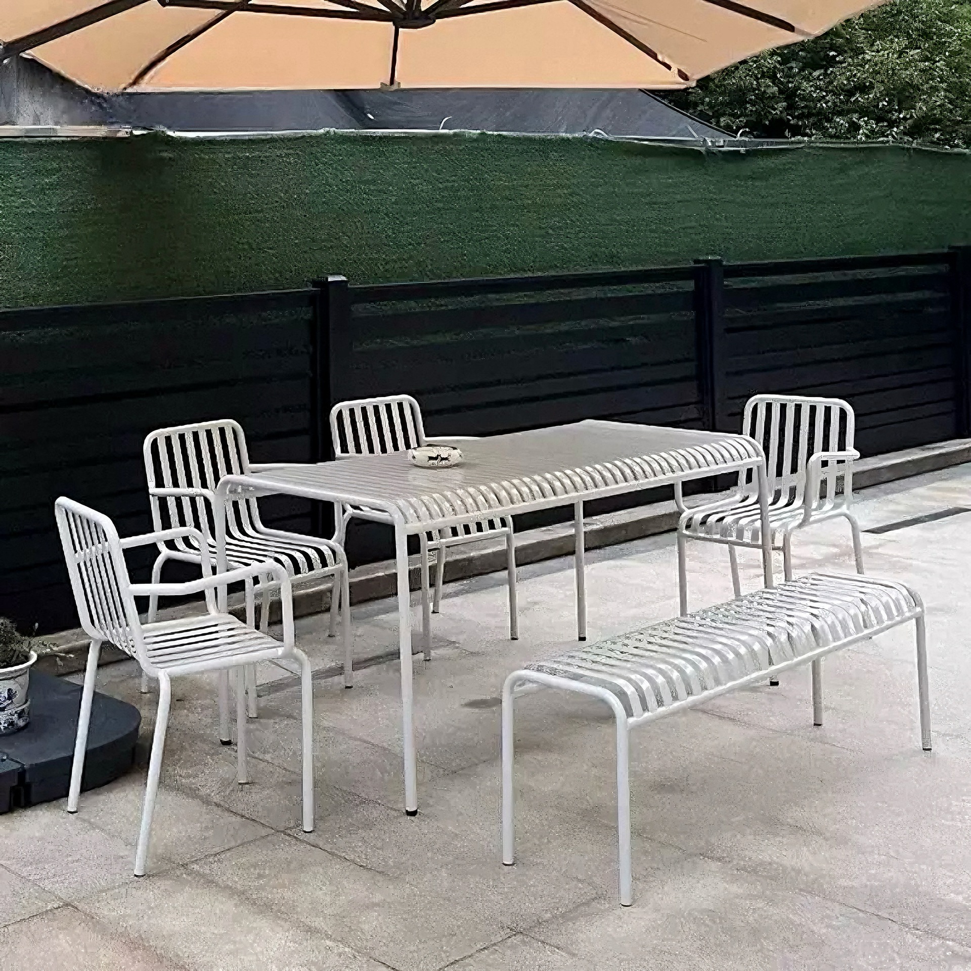 • 테이블 1개, 의자 6개(팔걸이 의자 4개 + 레저 의자 2개 + 긴 테이블 180개)