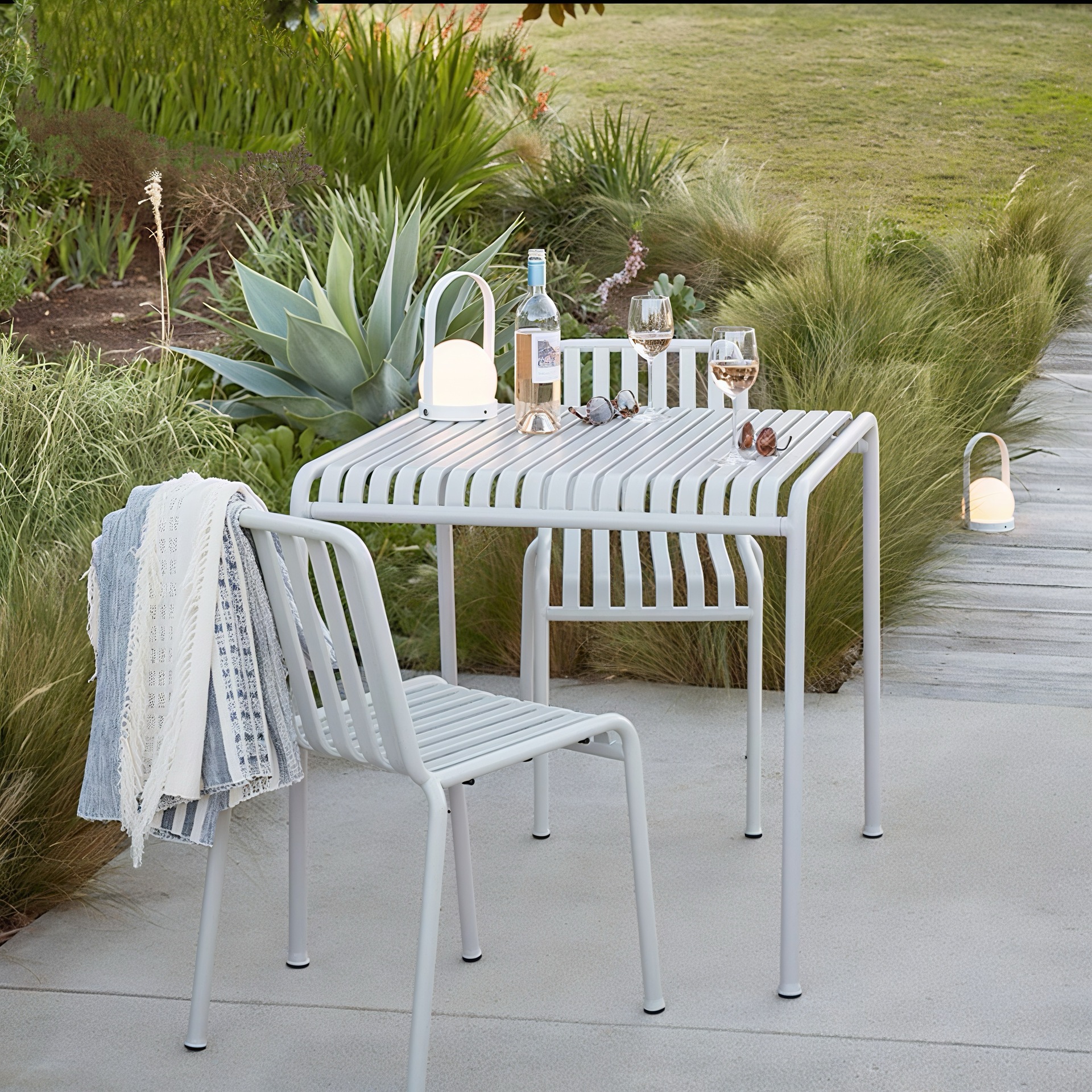 야외 테이블과 의자 흰색 현대 안뜰 발코니 인터넷 유명 야외 우유 차 가게 카페 레저 테이블과 의자 조합