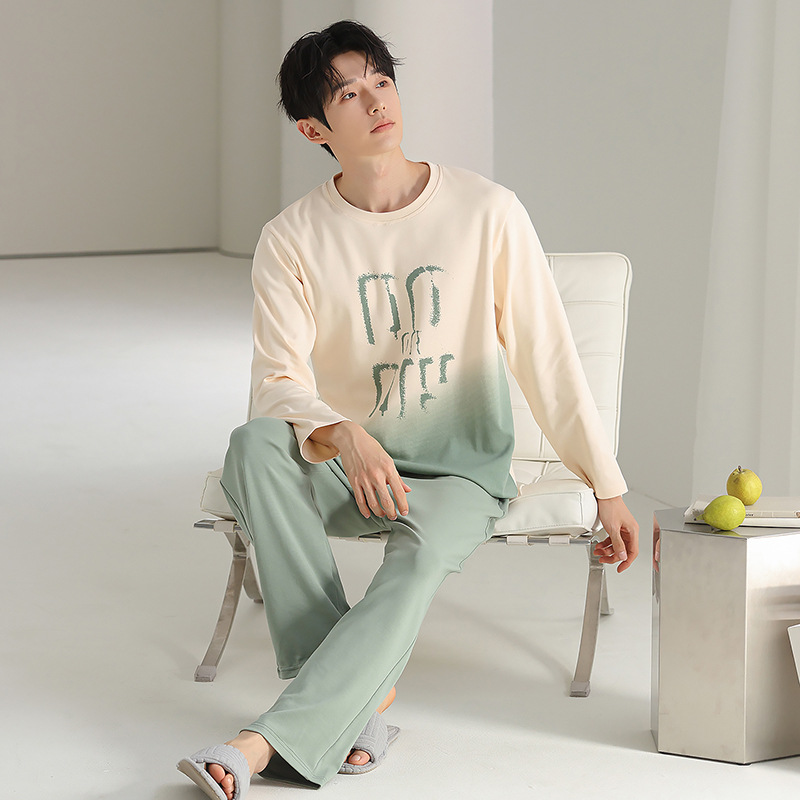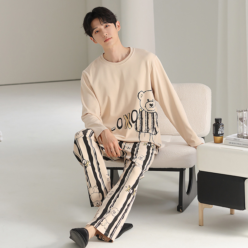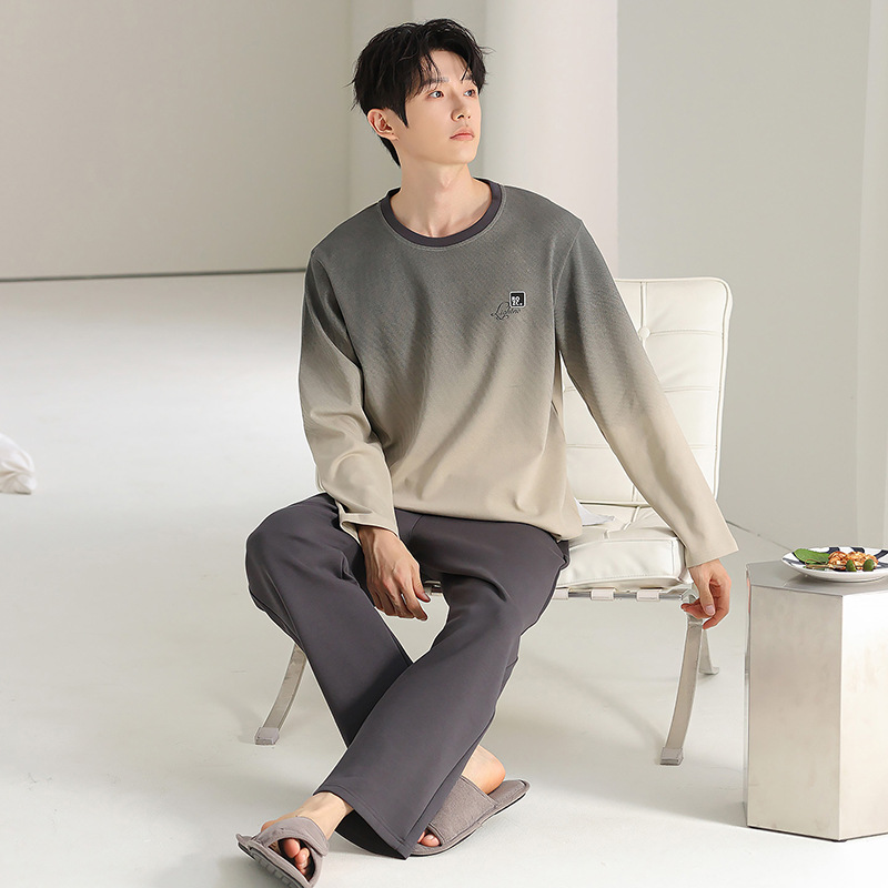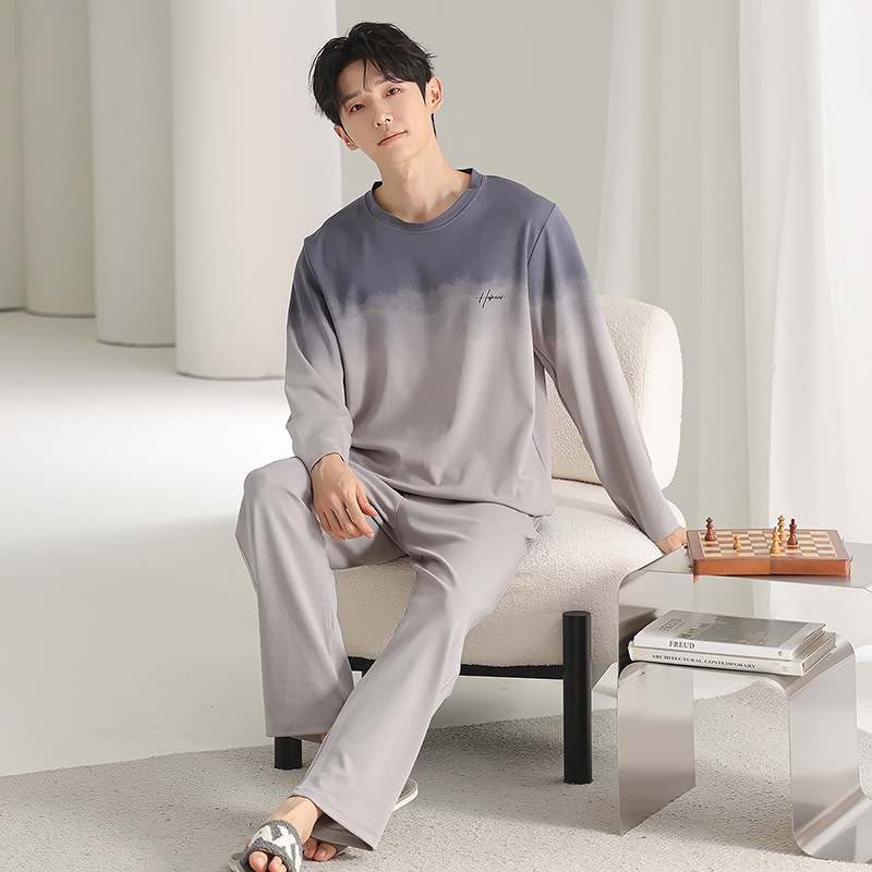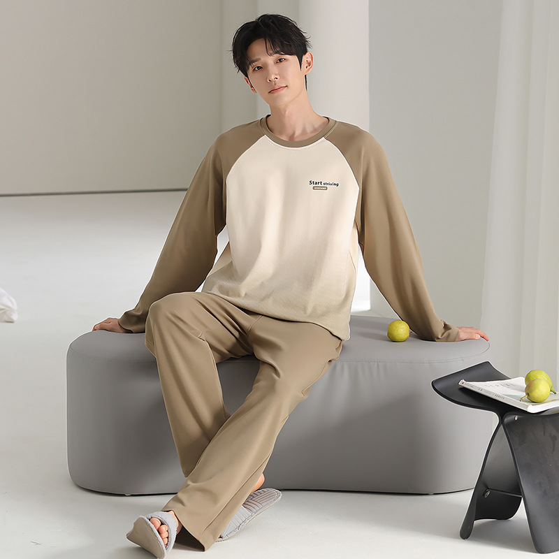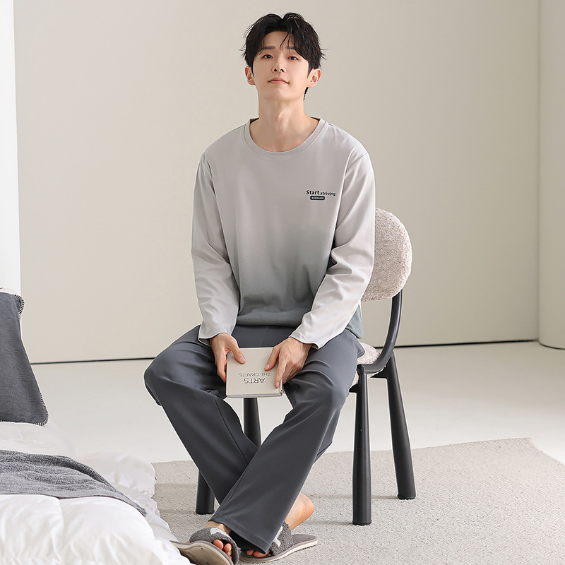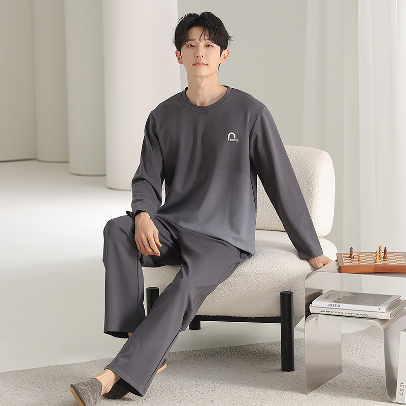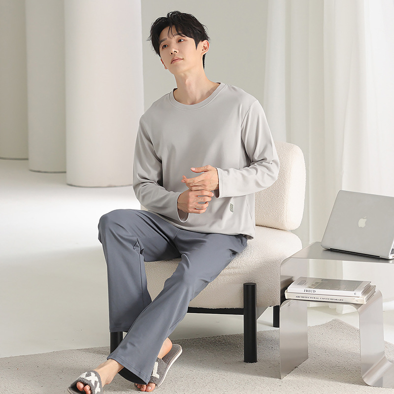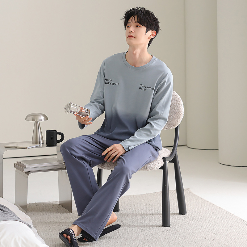 [순면] 남성용 잠옷 가을 긴팔 심플 캐주얼 루즈핏 대형 사이즈 한국 스타일 신상 홈웨어 투피스 세트스토어 가기
