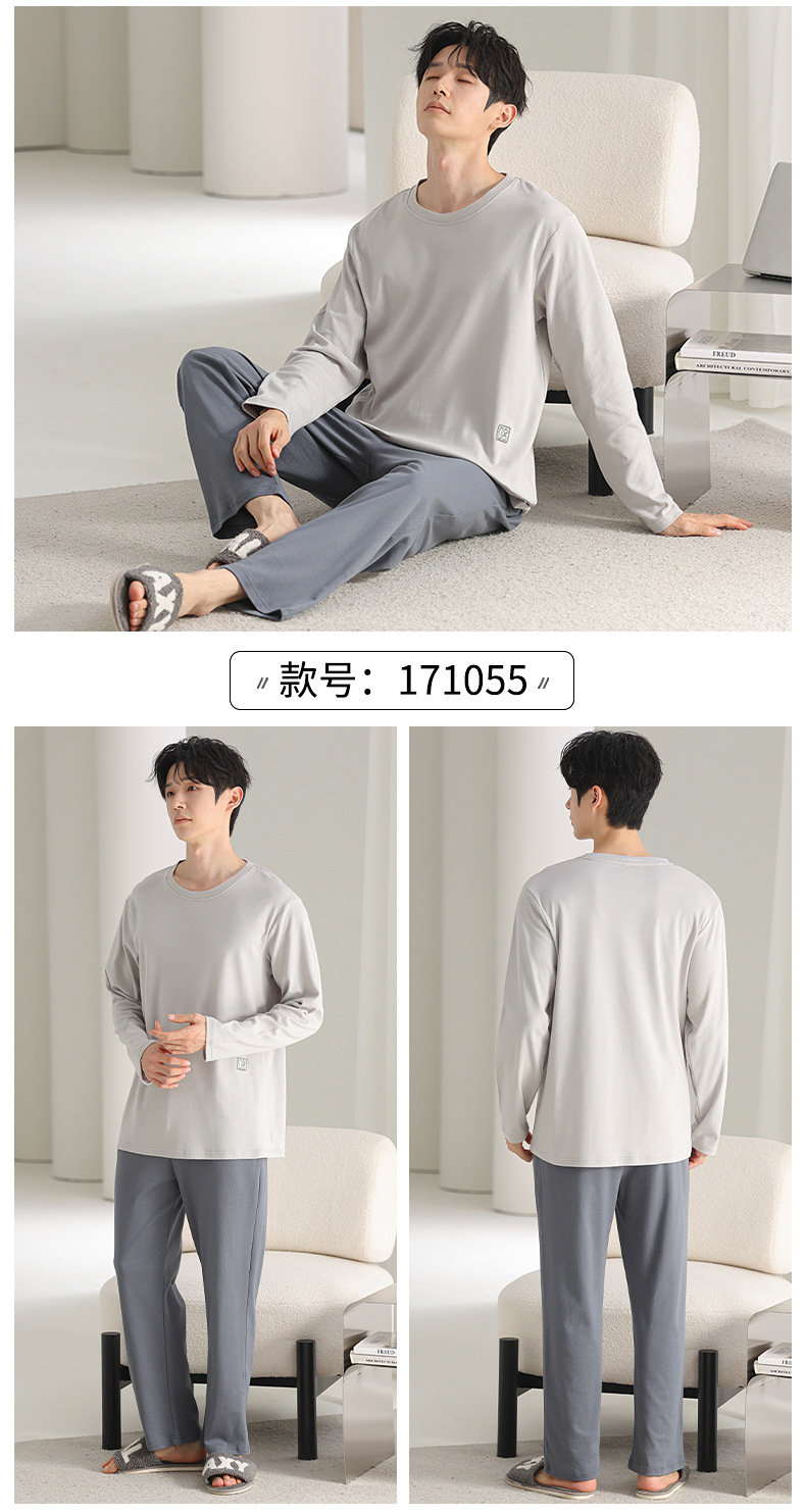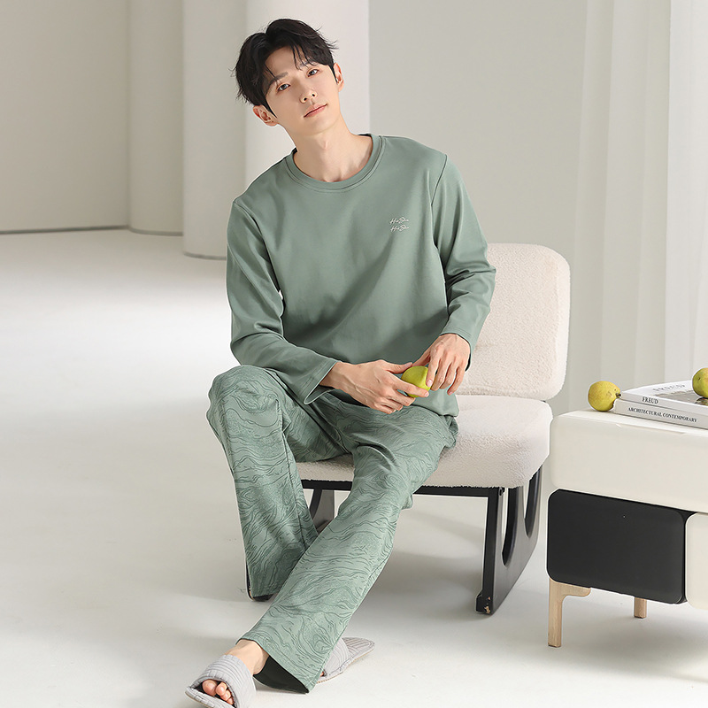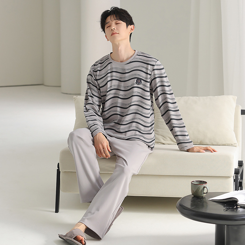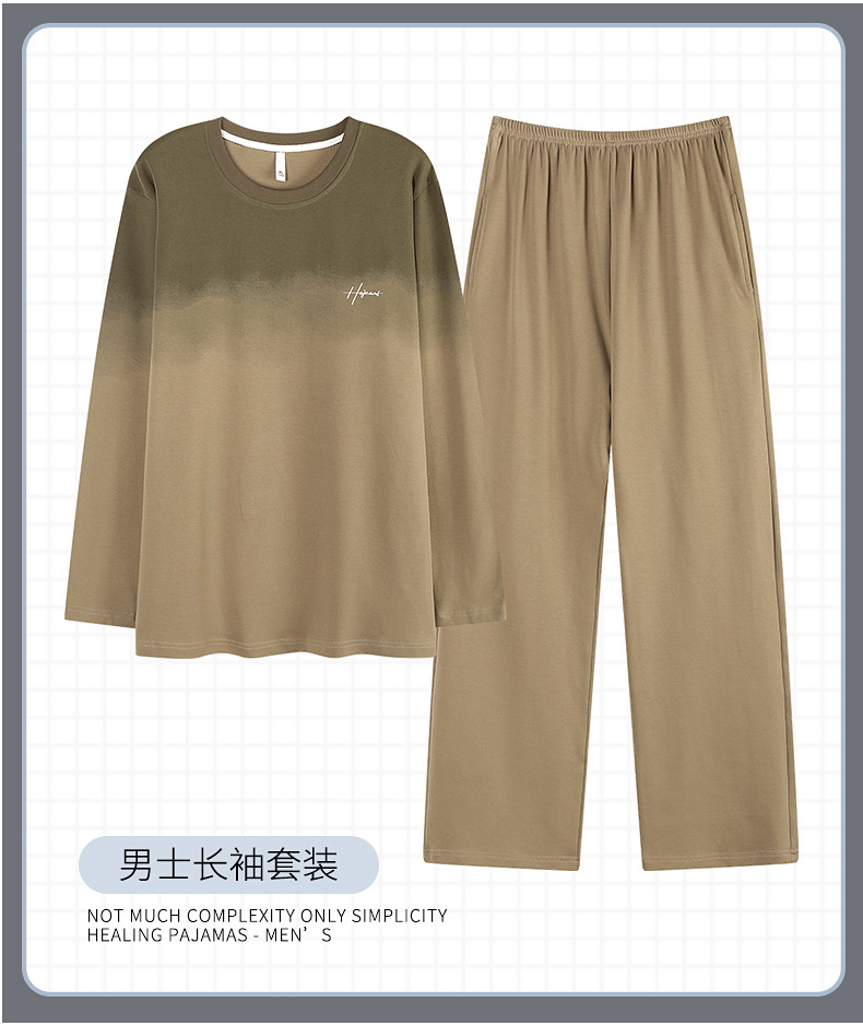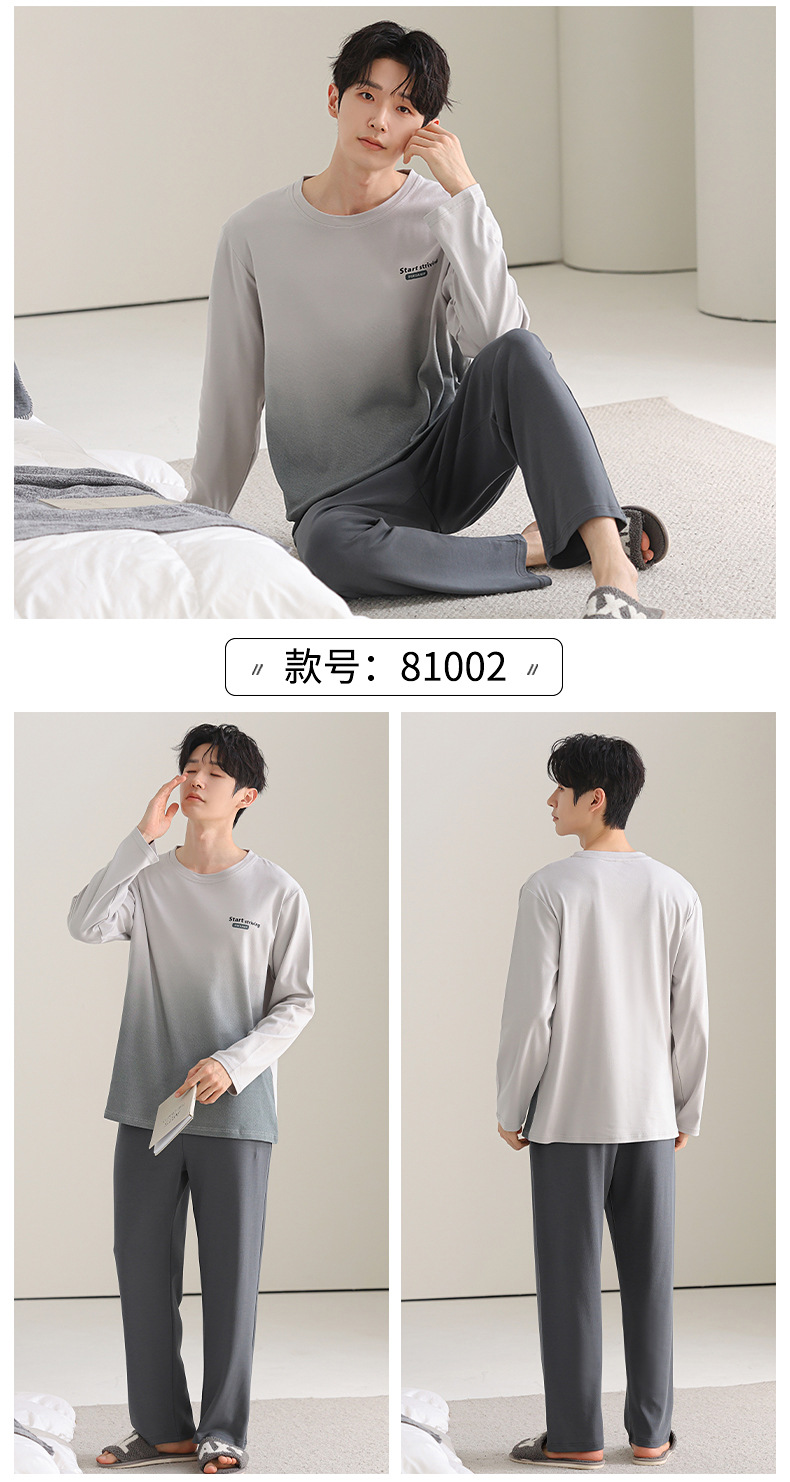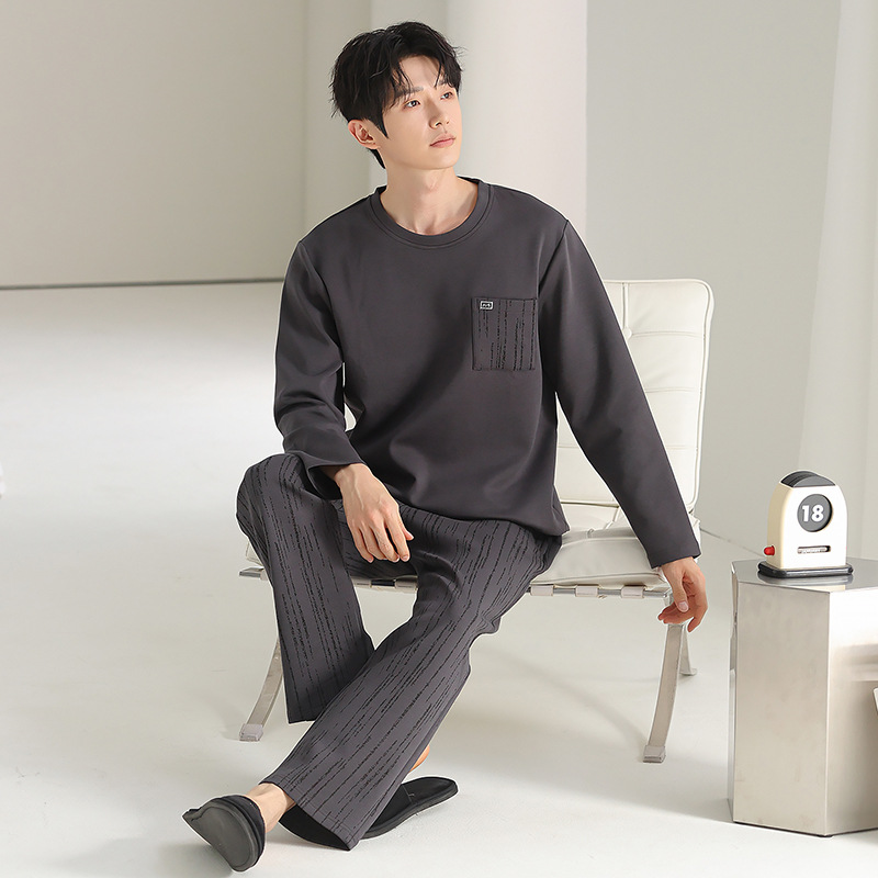 [순면] 남성용 잠옷 가을 긴팔 심플 캐주얼 루즈핏 대형 사이즈 한국 스타일 신상 홈웨어 투피스 세트스토어 가기