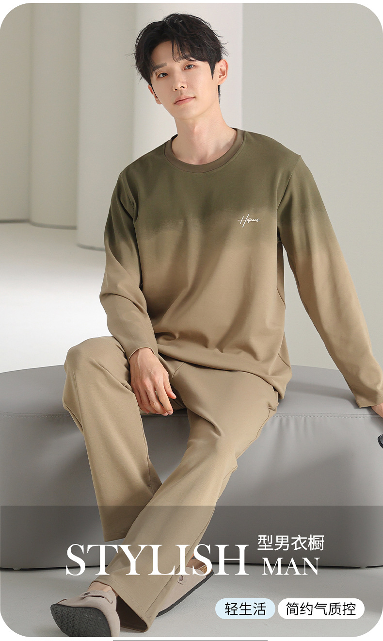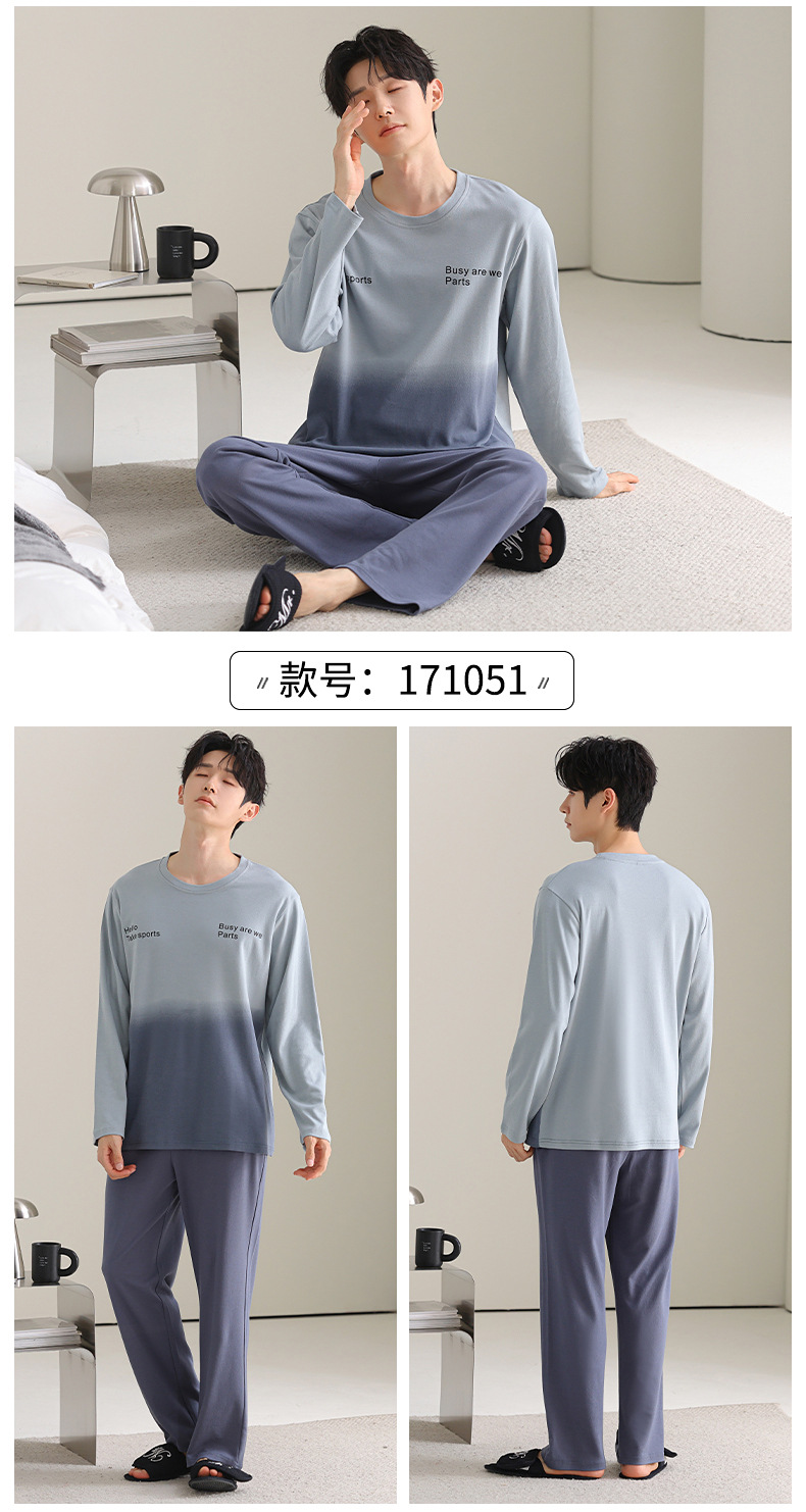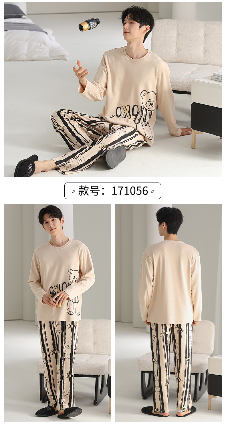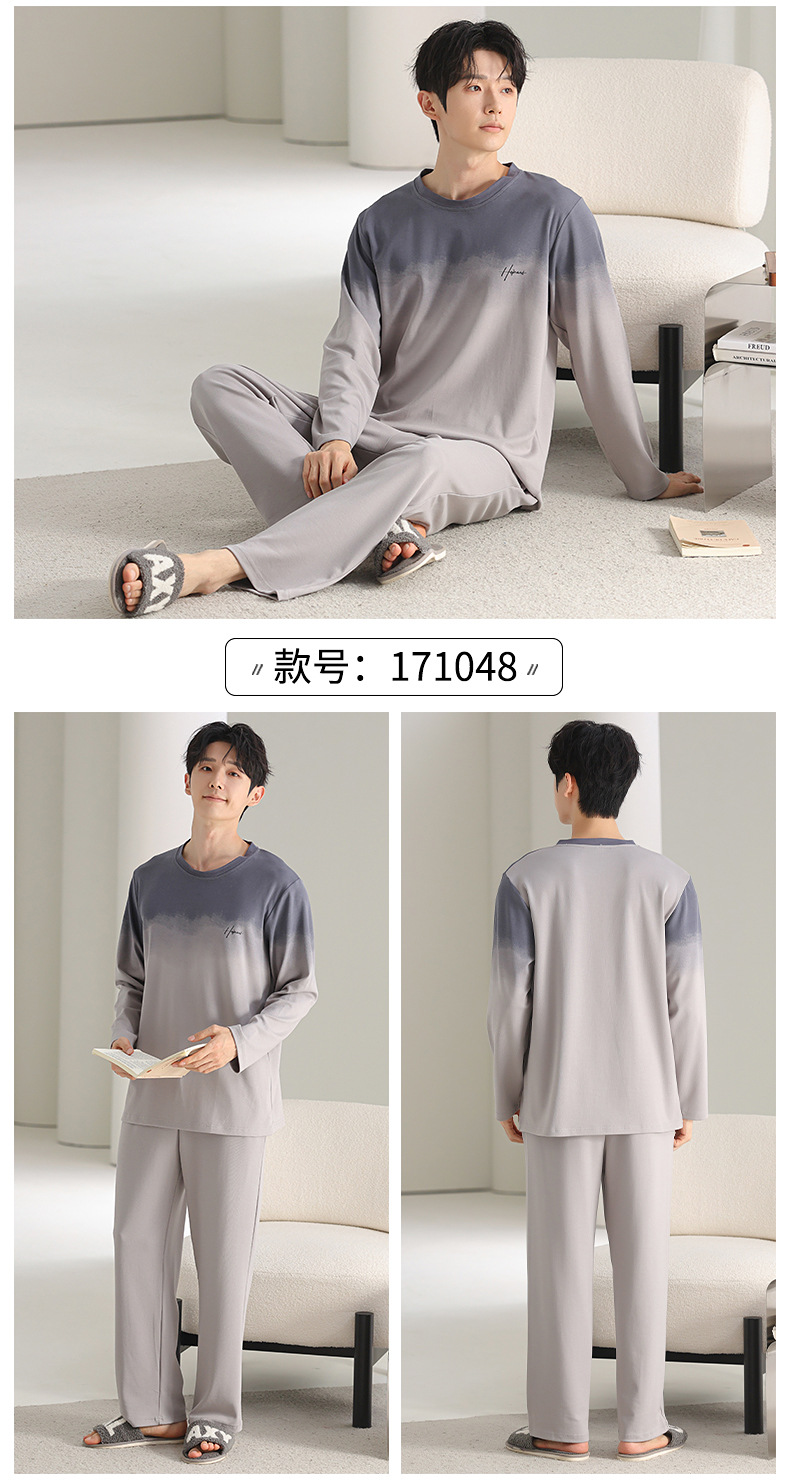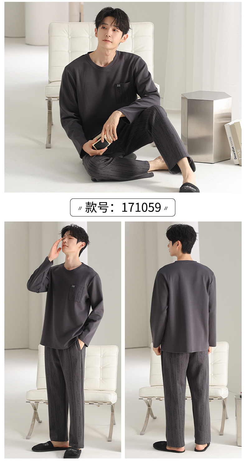 [순면] 남성용 잠옷 가을 긴팔 심플 캐주얼 루즈핏 대형 사이즈 한국 스타일 신상 홈웨어 투피스 세트스토어 가기