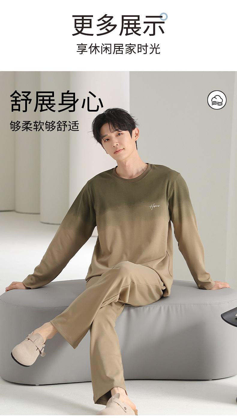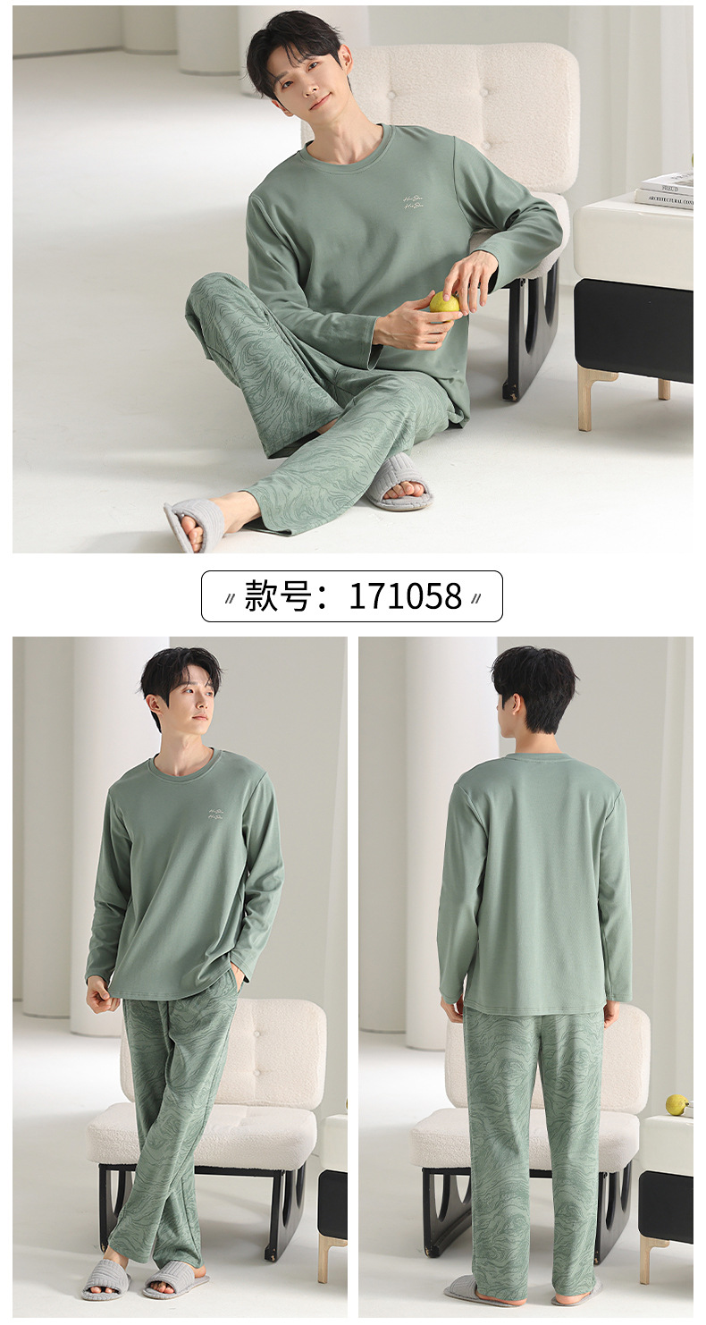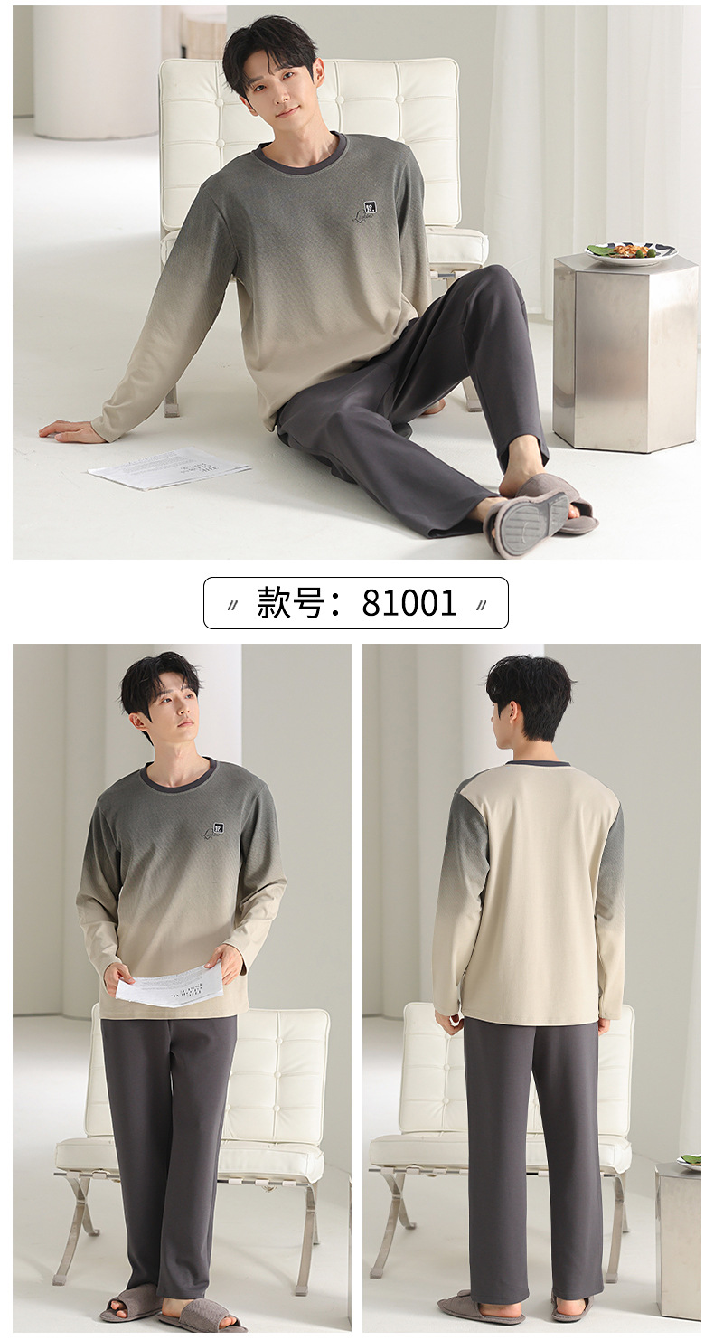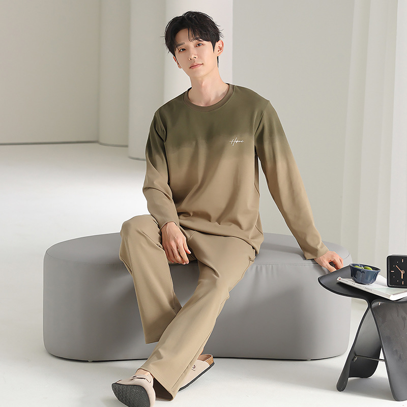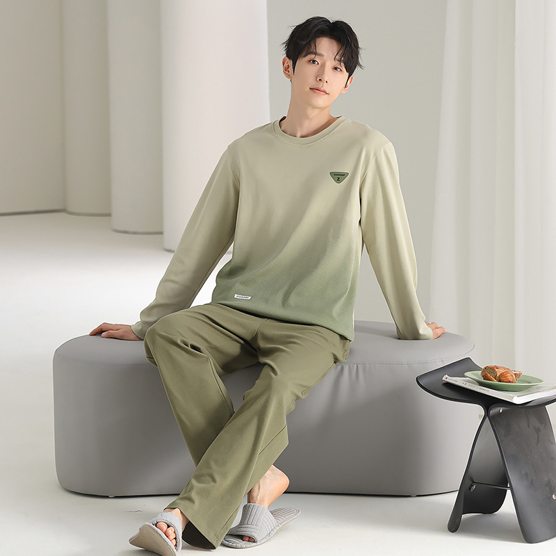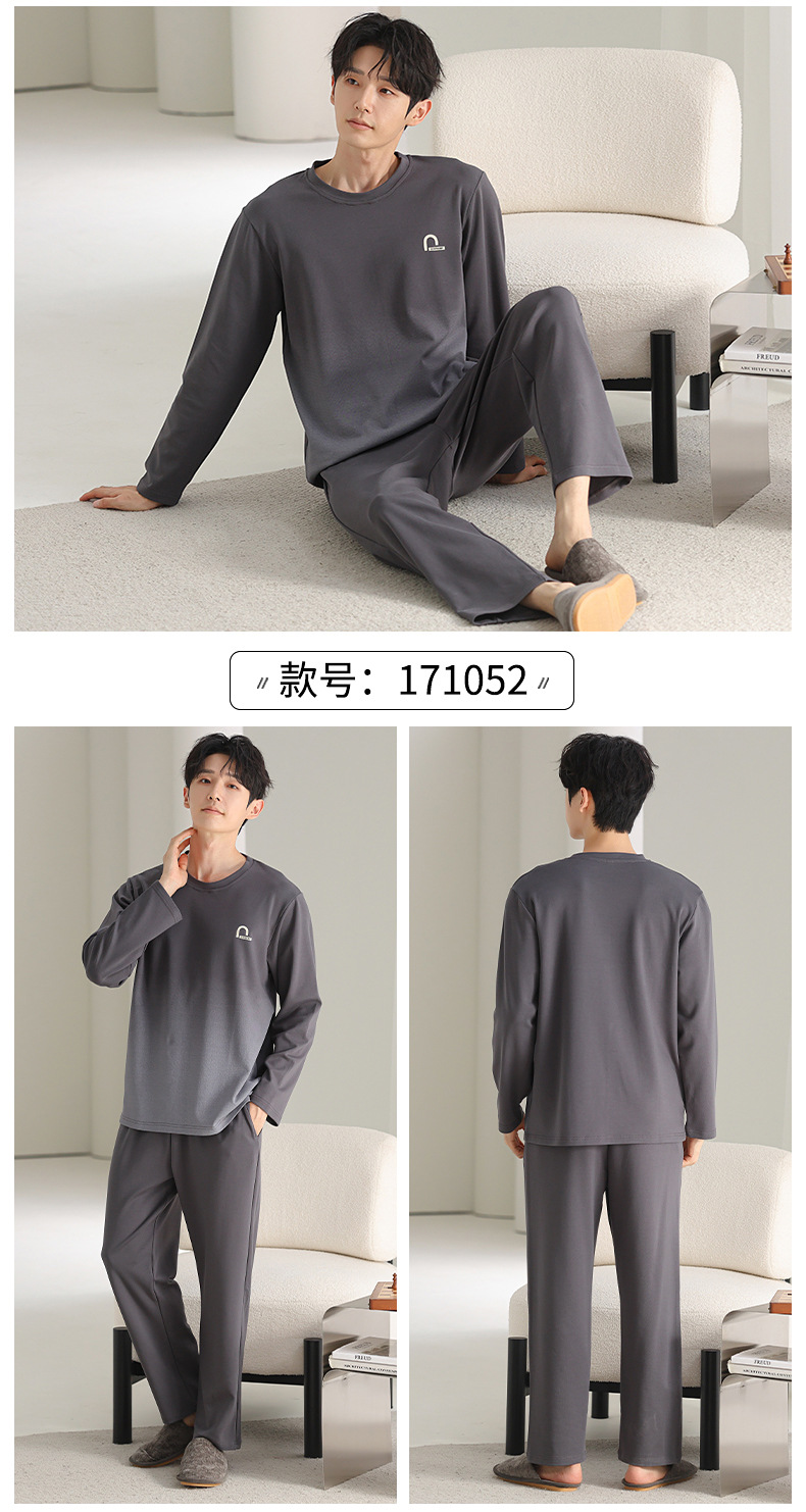 [순면] 남성용 잠옷 가을 긴팔 심플 캐주얼 루즈핏 대형 사이즈 한국 스타일 신상 홈웨어 투피스 세트스토어 가기
