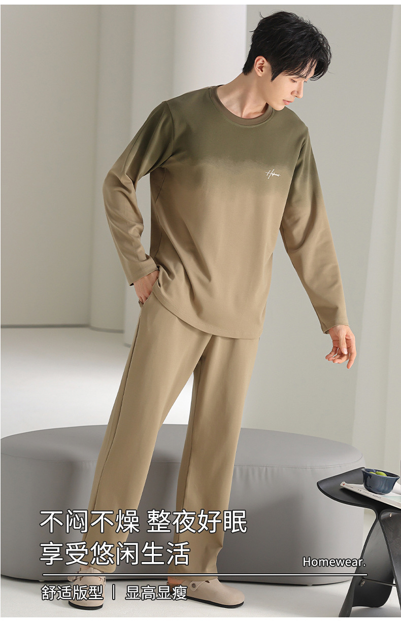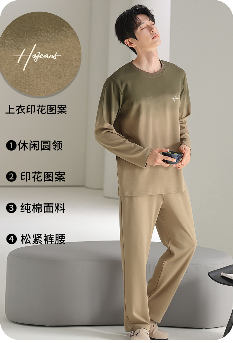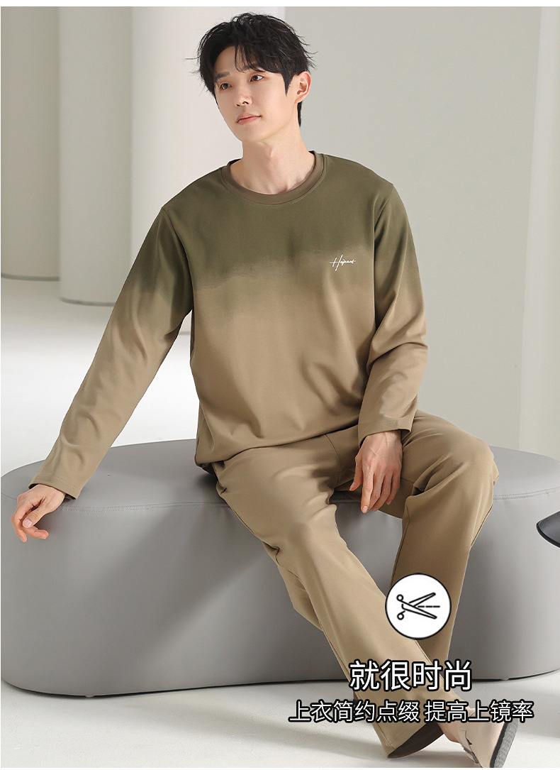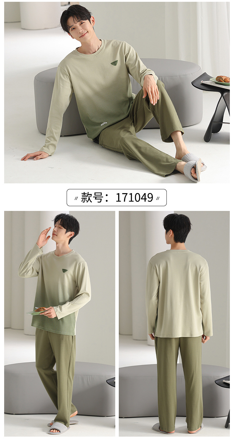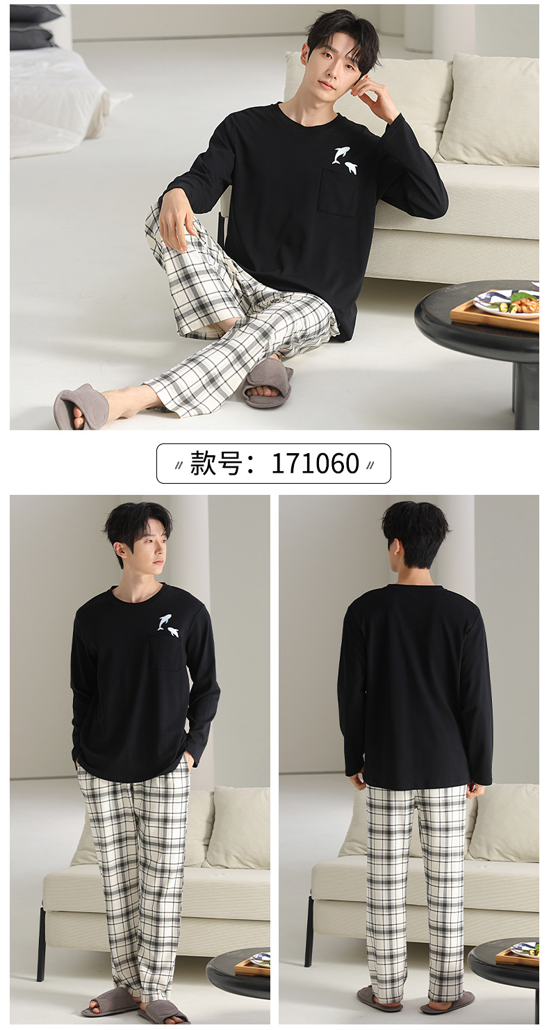 [순면] 남성용 잠옷 가을 긴팔 심플 캐주얼 루즈핏 대형 사이즈 한국 스타일 신상 홈웨어 투피스 세트스토어 가기