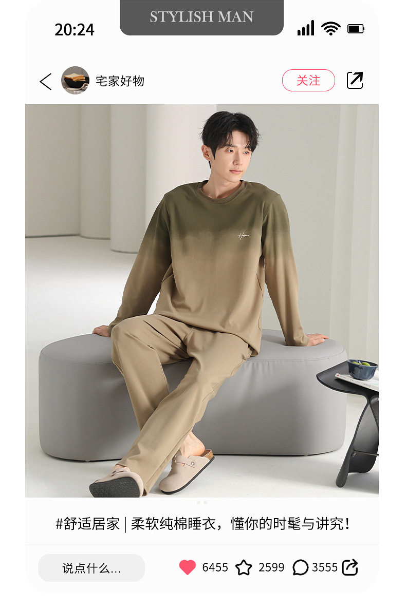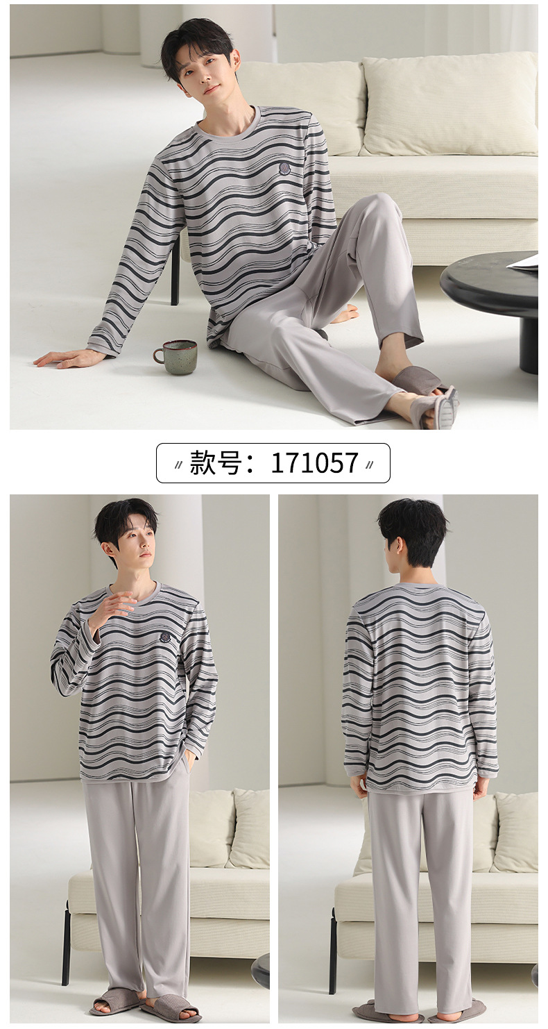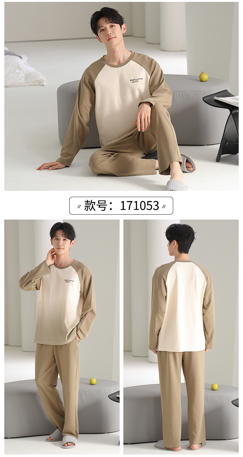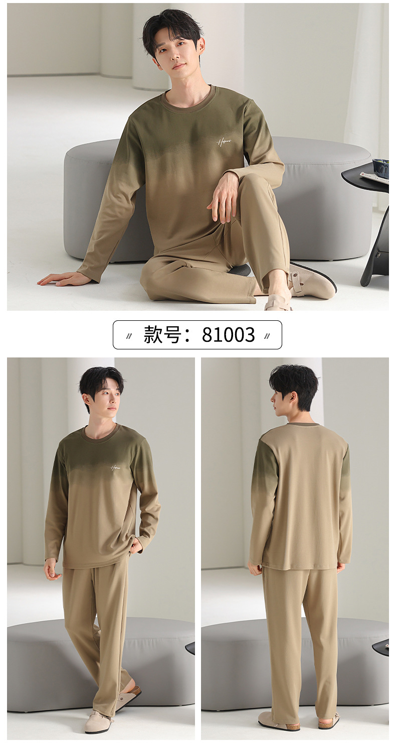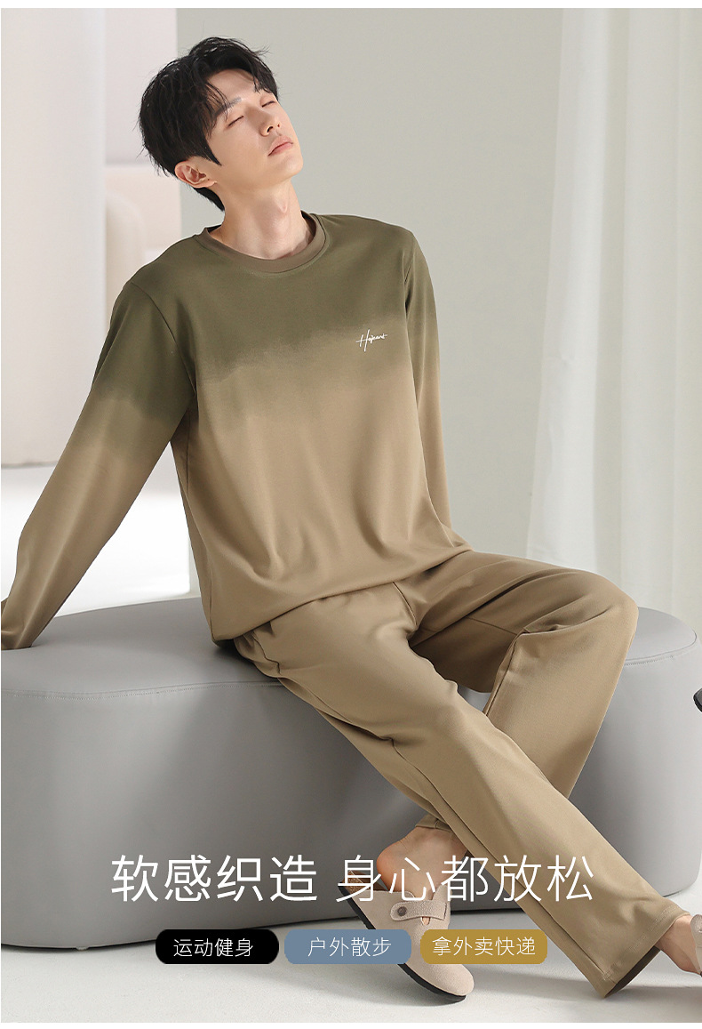 [순면] 남성용 잠옷 가을 긴팔 심플 캐주얼 루즈핏 대형 사이즈 한국 스타일 신상 홈웨어 투피스 세트스토어 가기