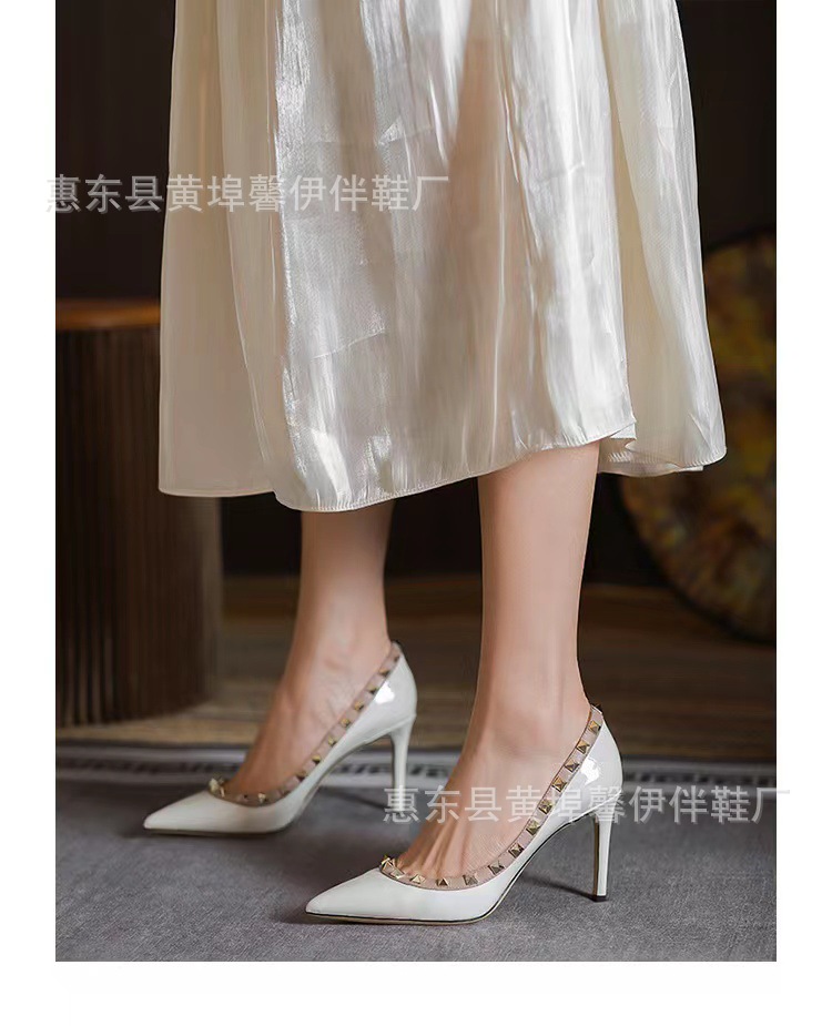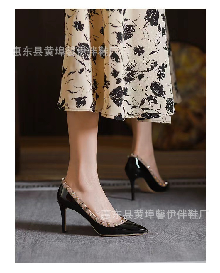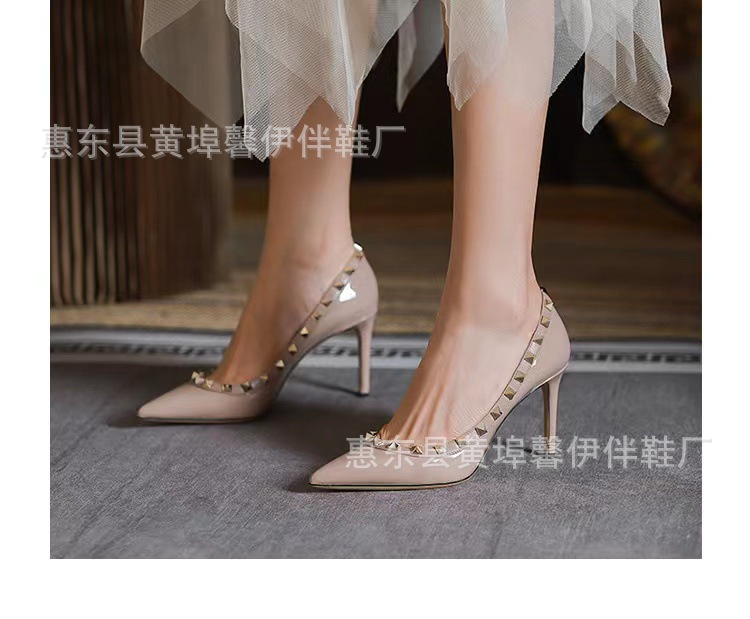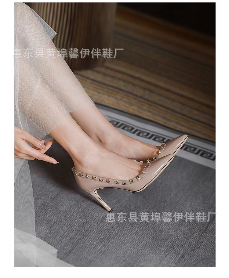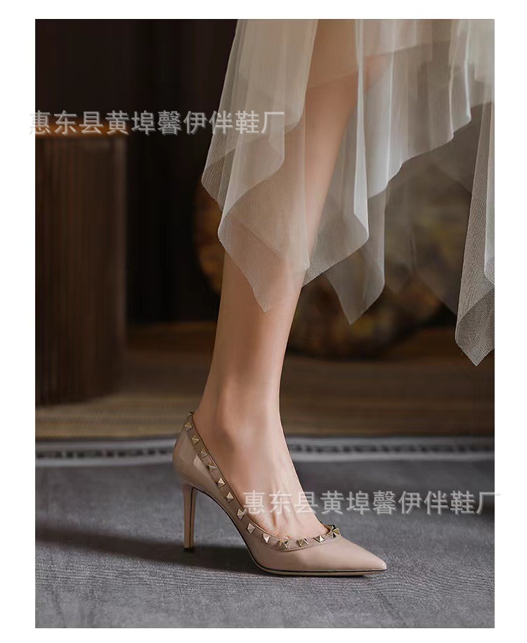 리벳 하이힐 여성 스틸레토 힐 2025 봄과 여름 새 왕실 자매 섹시한 기질 Liu Ding 지적 누드 신발스토어 가기