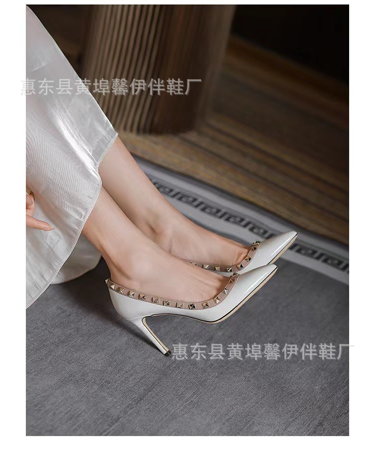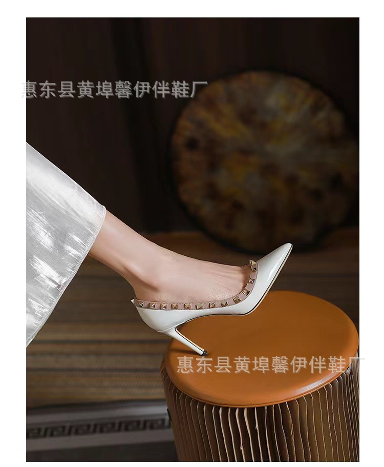 리벳 하이힐 여성 스틸레토 힐 2025 봄과 여름 새 왕실 자매 섹시한 기질 Liu Ding 지적 누드 신발
