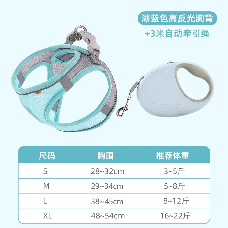 • 레이크 블루 하네스 + 3m 자동 견인 로프