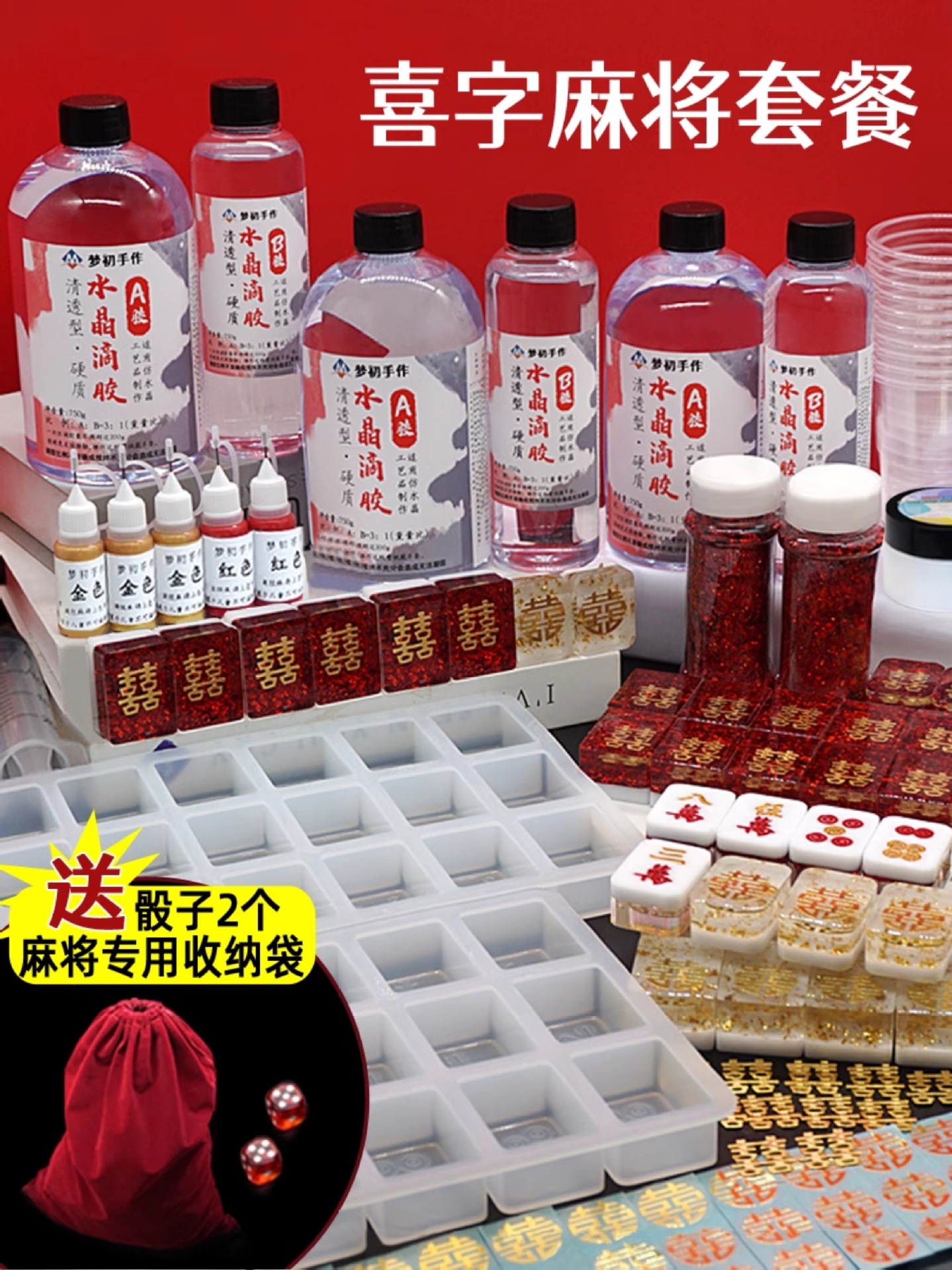 꿈 초기 크리스탈 드롭 접착제 마작 diy 소재 패키지 세트 행복한 단어 새로운 웨딩 수제 액세서리 금형 AB 접착제 패키지