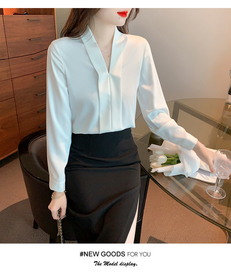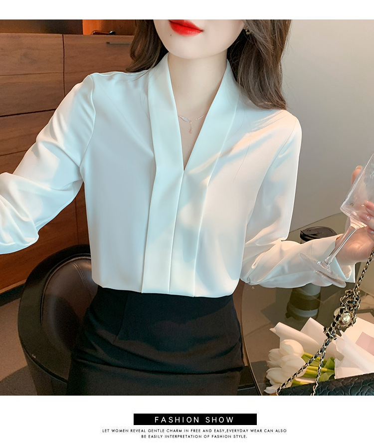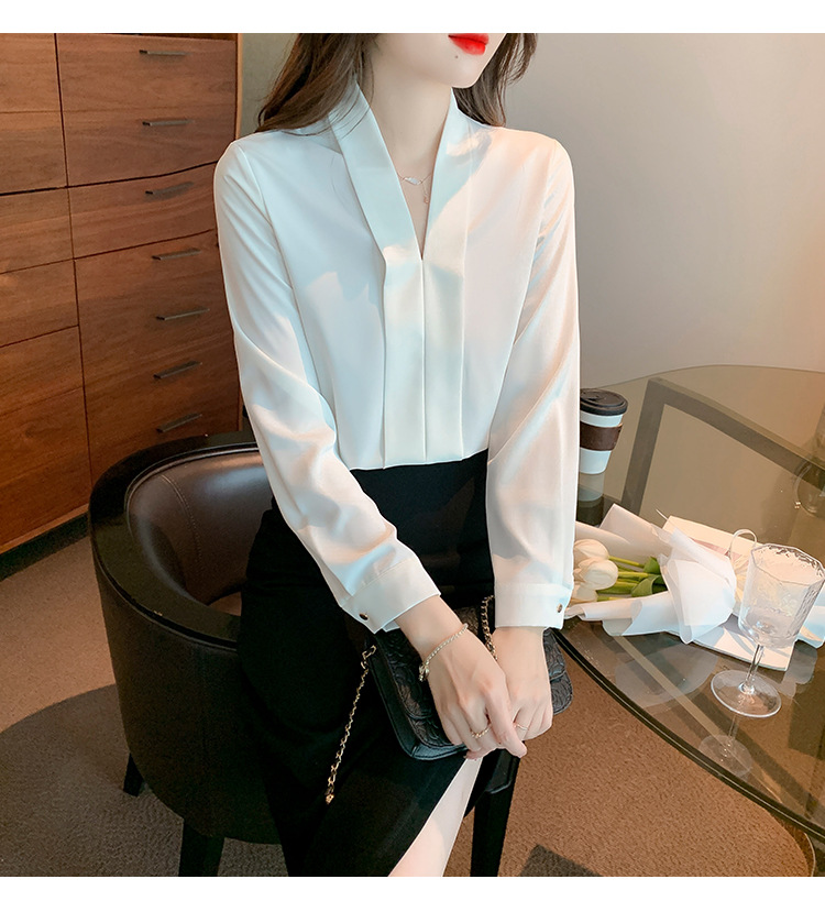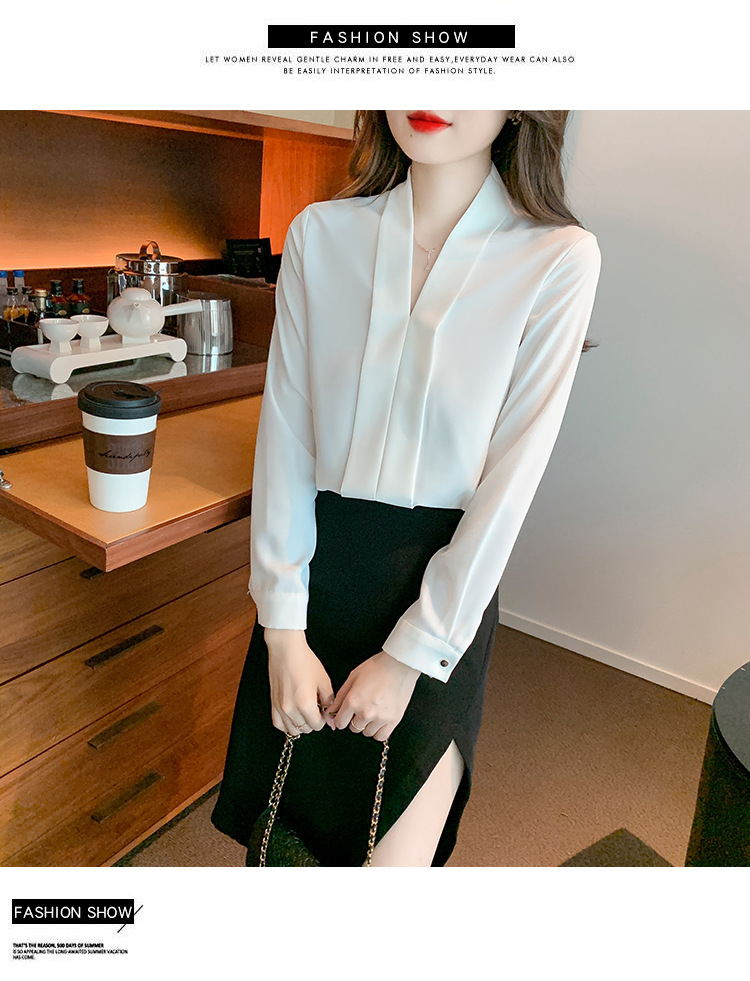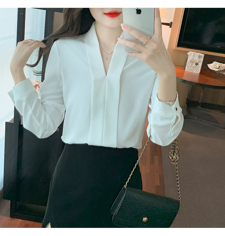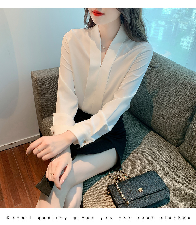 2025 봄 새로운 도착 웨스턴 스타일 화이트 V 넥 쉬폰 셔츠 여성용 긴팔 느슨한 슬리밍 올 매치 프로 우아한 탑