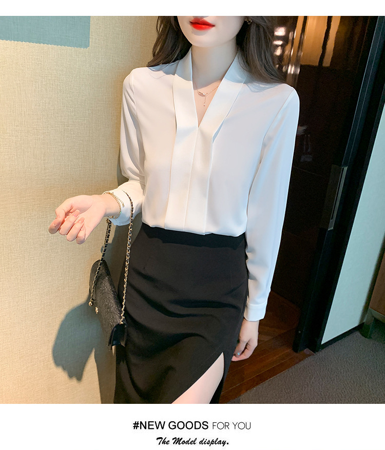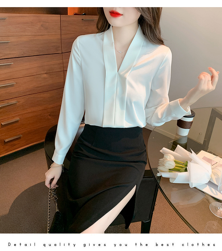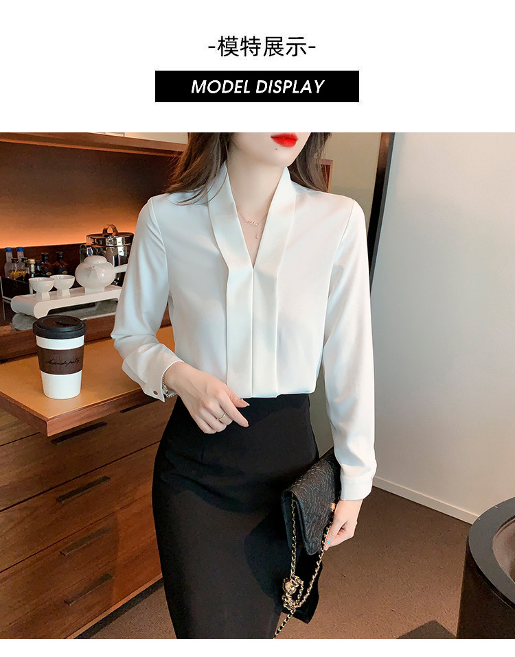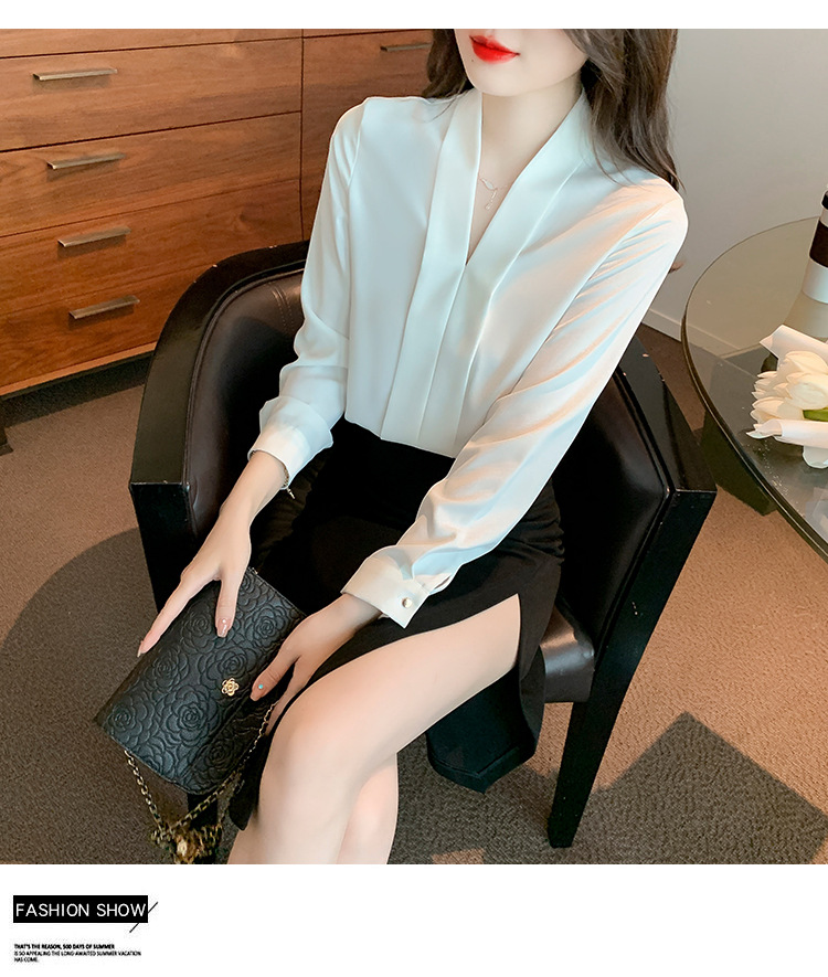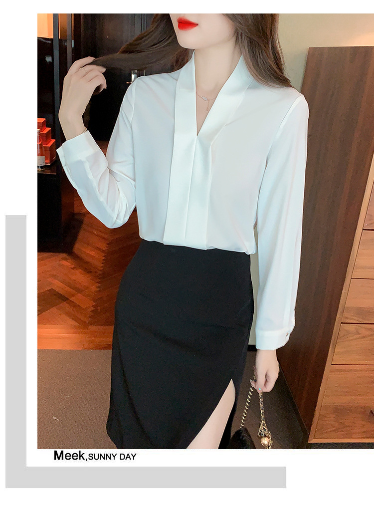 2025 봄 새로운 도착 웨스턴 스타일 화이트 V 넥 쉬폰 셔츠 여성용 긴팔 느슨한 슬리밍 올 매치 프로 우아한 탑