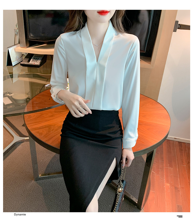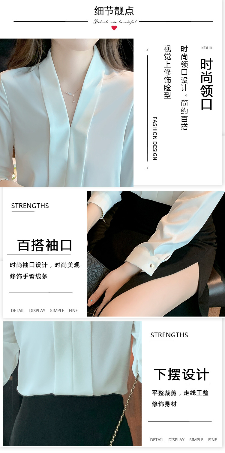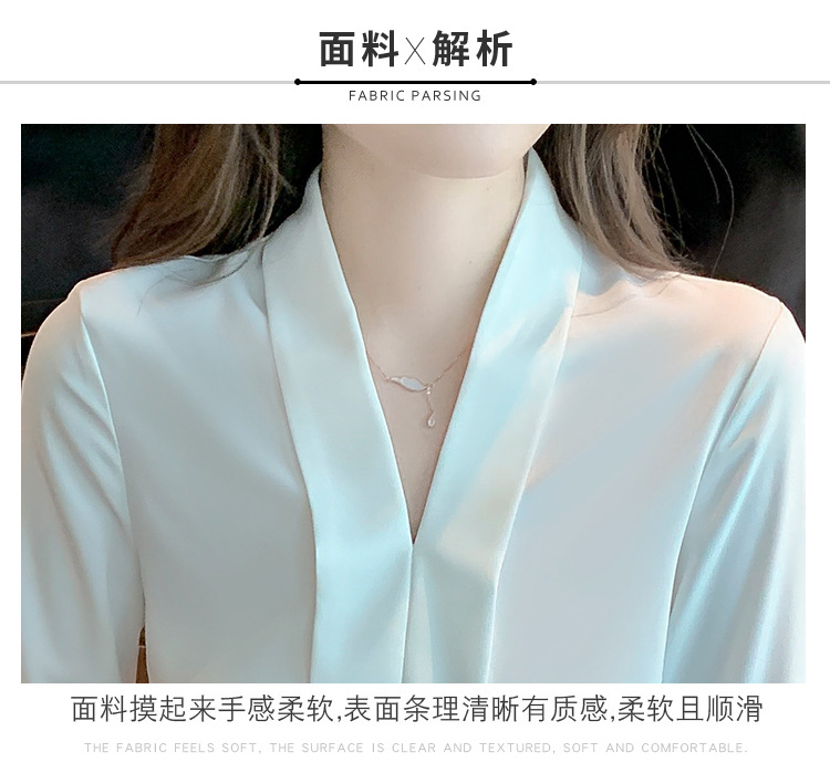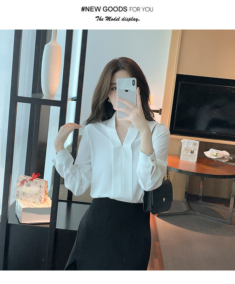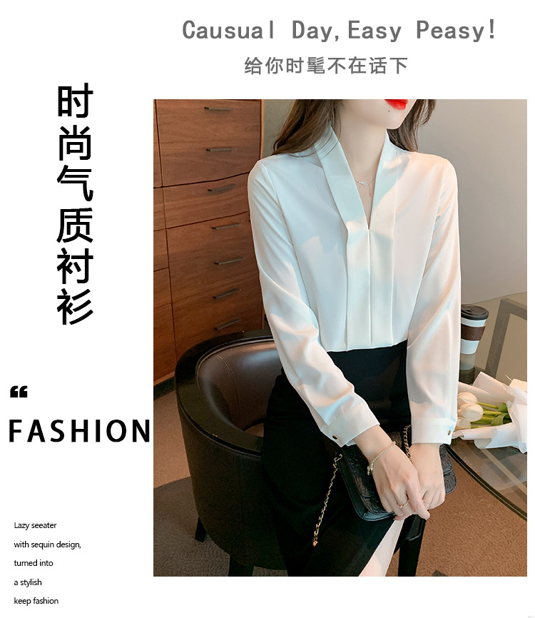 2025 봄 새로운 도착 웨스턴 스타일 화이트 V 넥 쉬폰 셔츠 여성용 긴팔 느슨한 슬리밍 올 매치 프로 우아한 탑스토어 가기