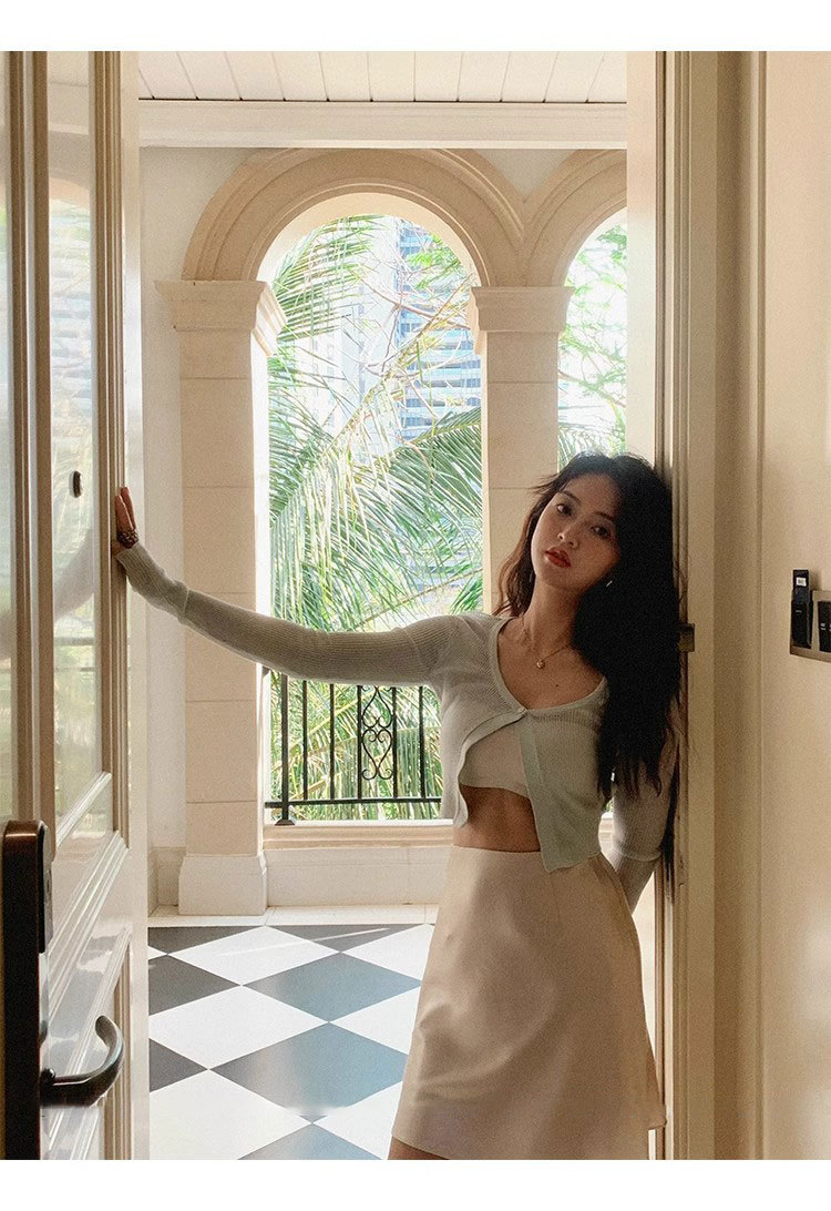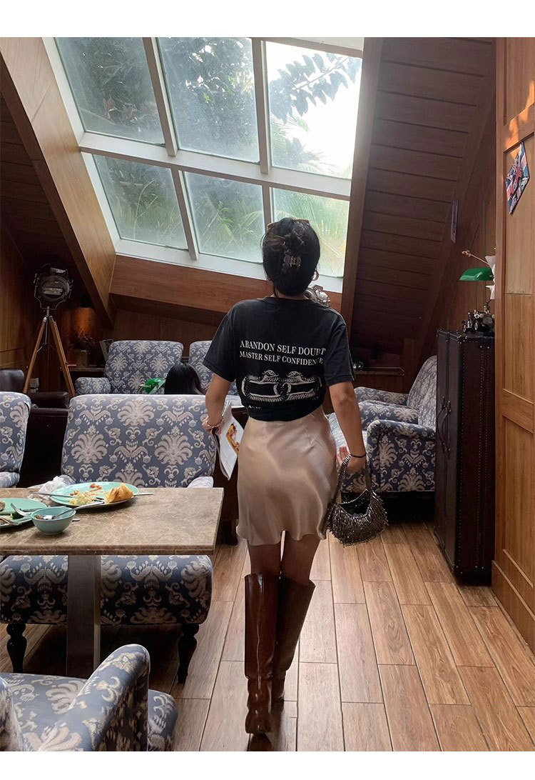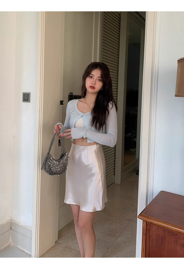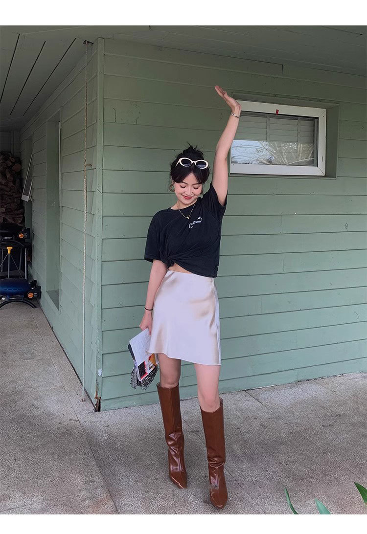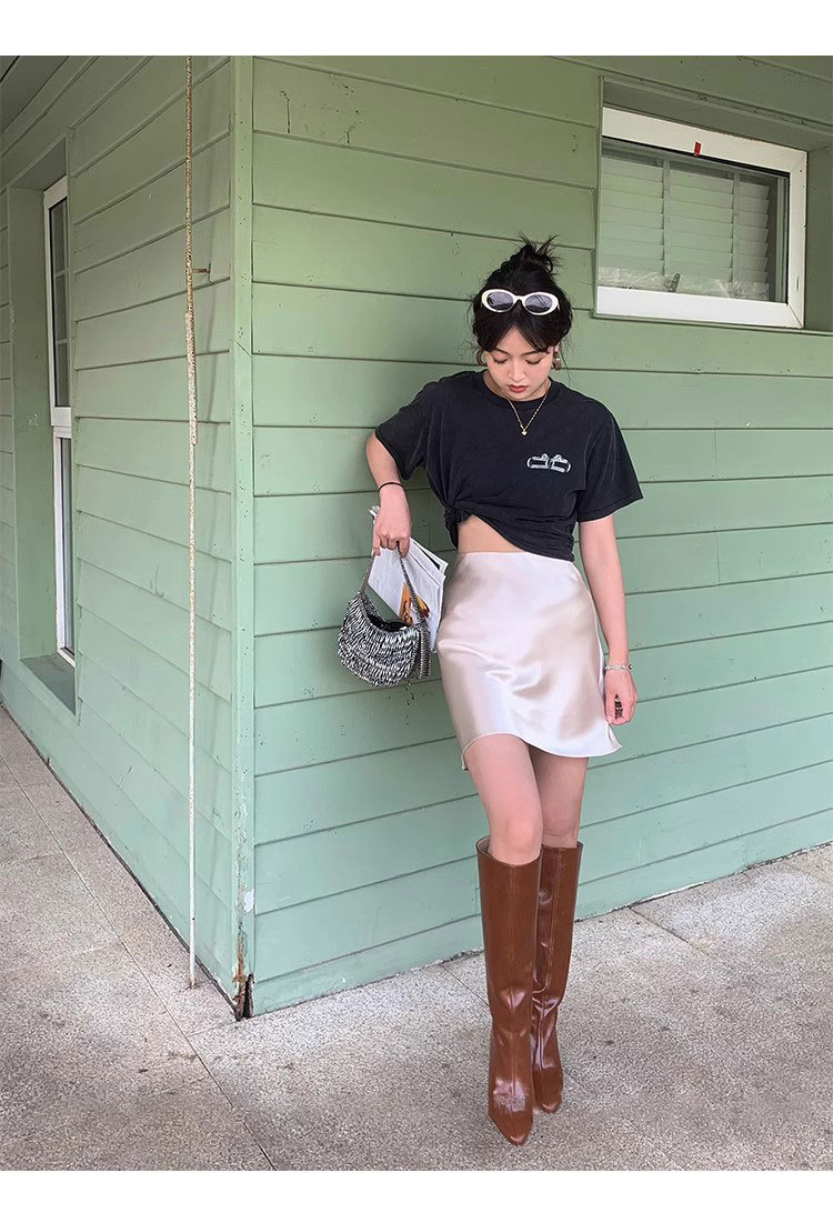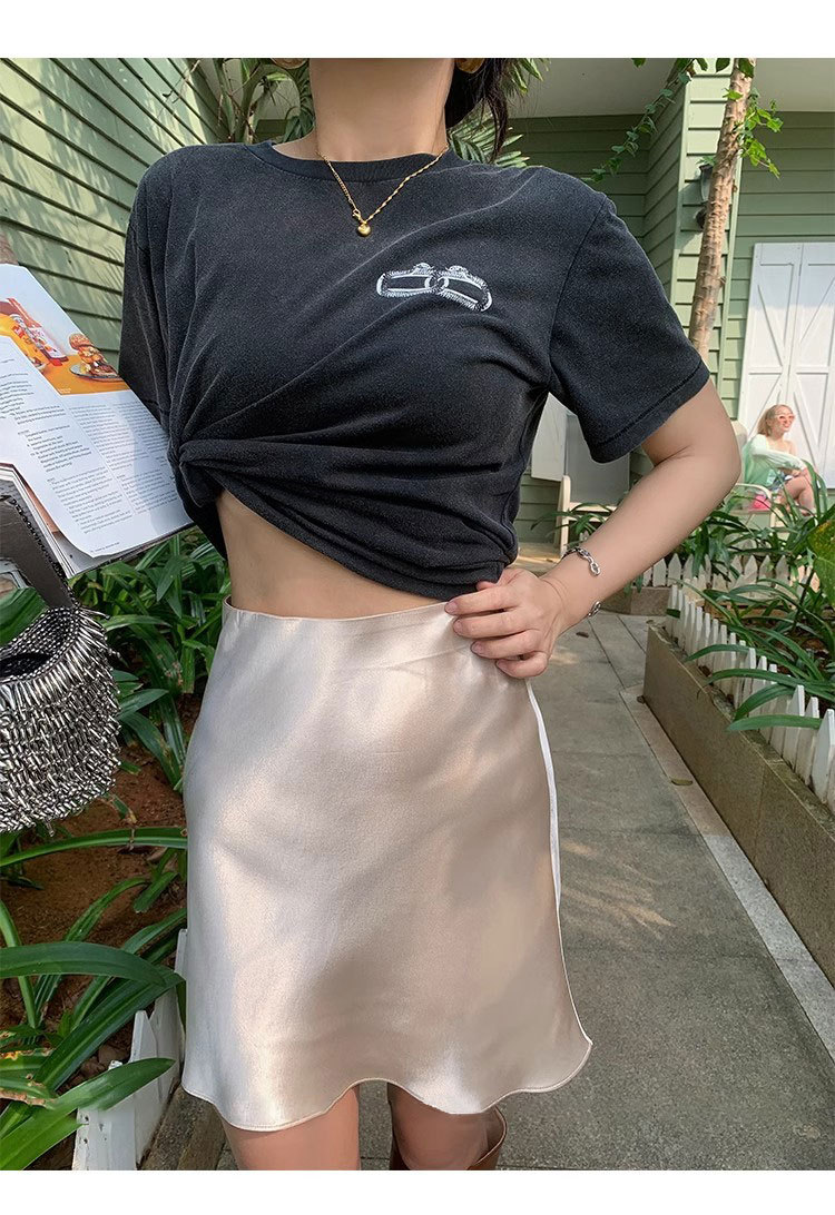 여름 높은 허리 통기성 슬리밍 Fishtail 진주 빛 Triacetate Satin 힙합 스커트 A- Line 짧은 치마스토어 가기