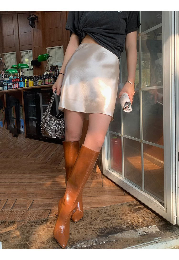 여름 높은 허리 통기성 슬리밍 Fishtail 진주 빛 Triacetate Satin 힙합 스커트 A- Line 짧은 치마