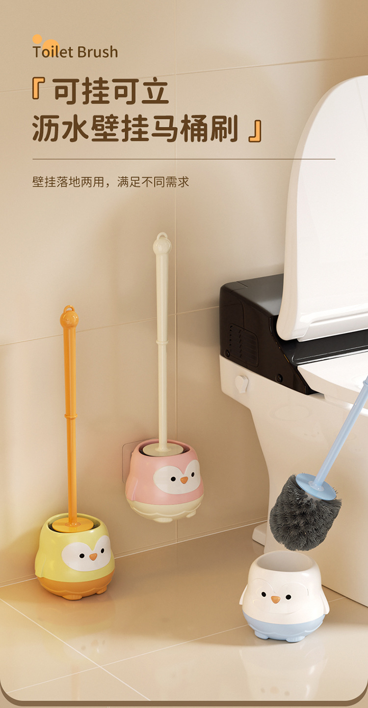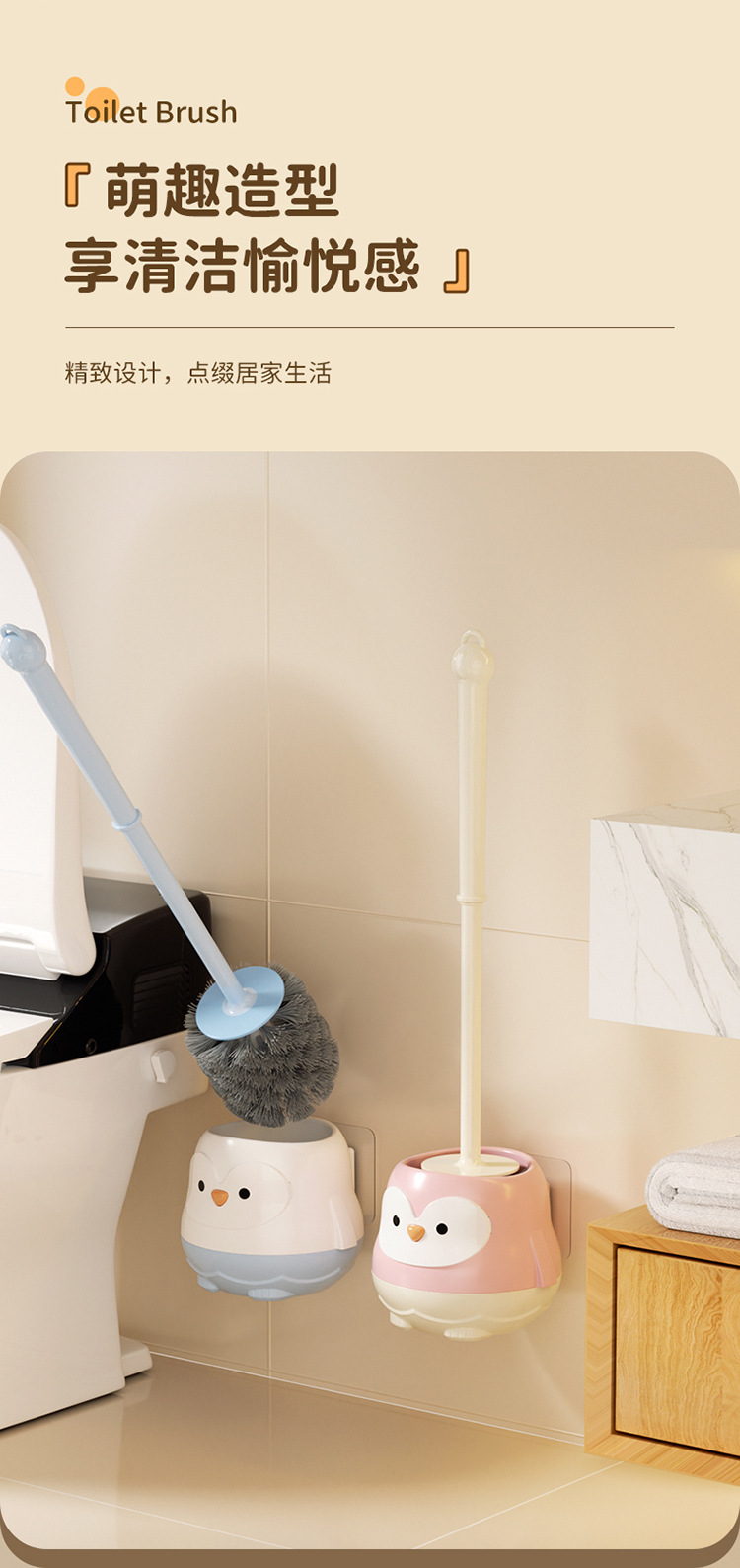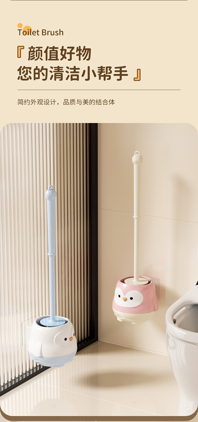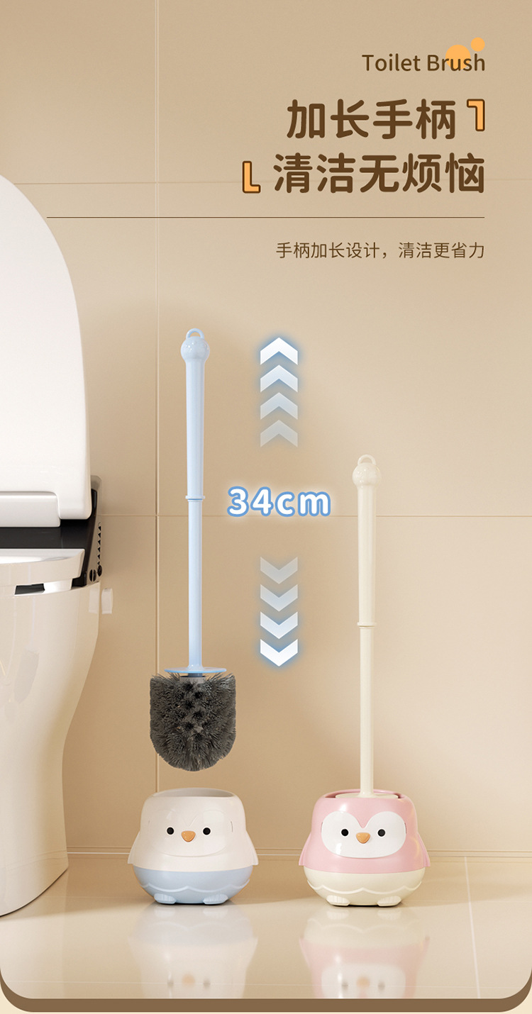 귀여운 펭귄 화장실 브러시 가정용 죽은 각도 브러시 화장실 화장실 화장실 만화 긴 손잡이 화장실 청소 브러시