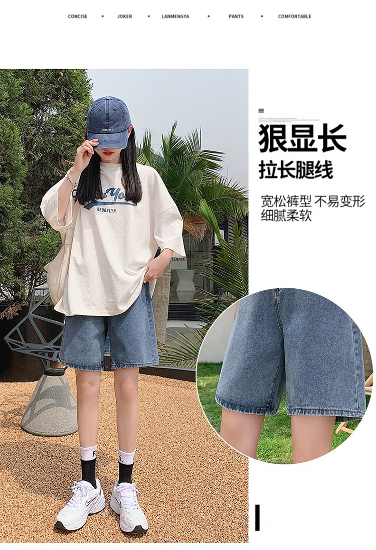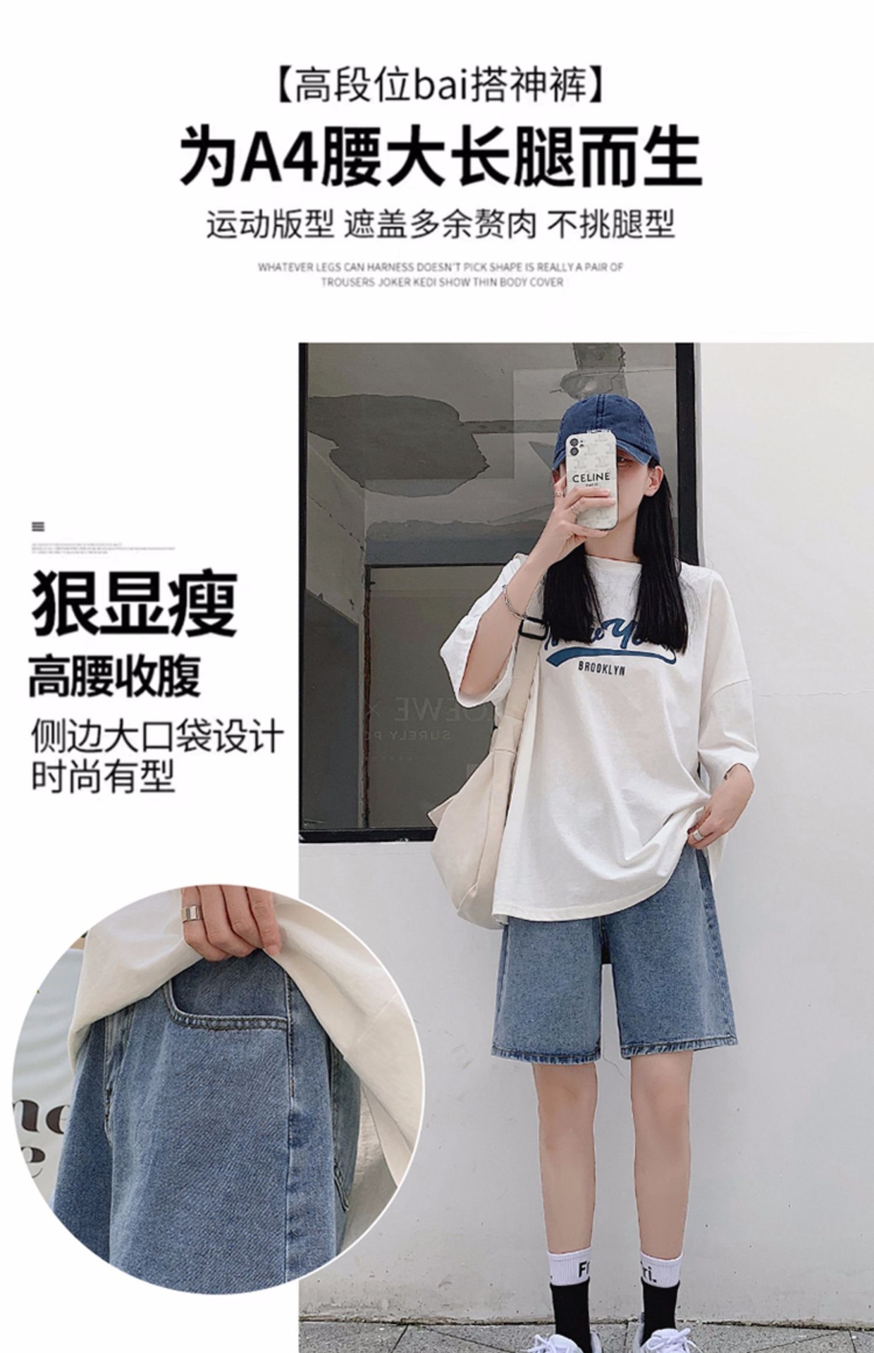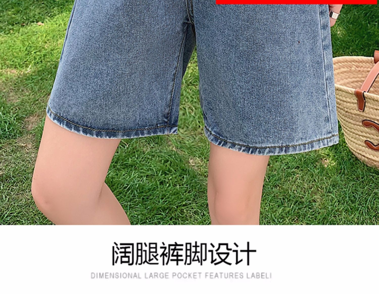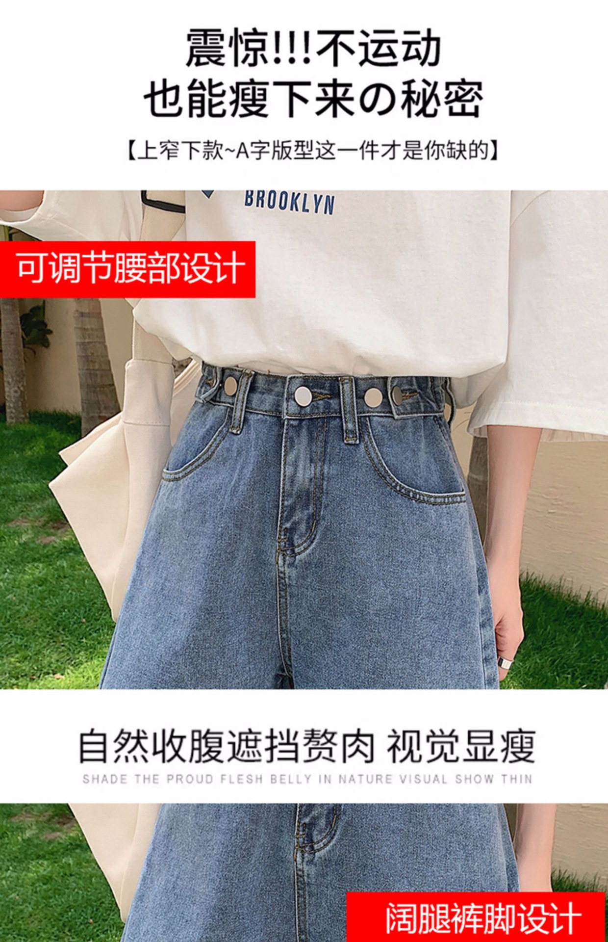 데님 반바지 여자 여름 2025 새로운 플러스 사이즈 높은 허리 느슨한 슬리밍 작은 넓은 다리 바지 중간 길이 바지스토어 가기