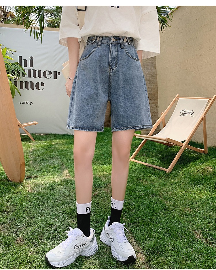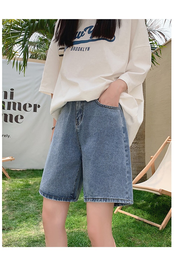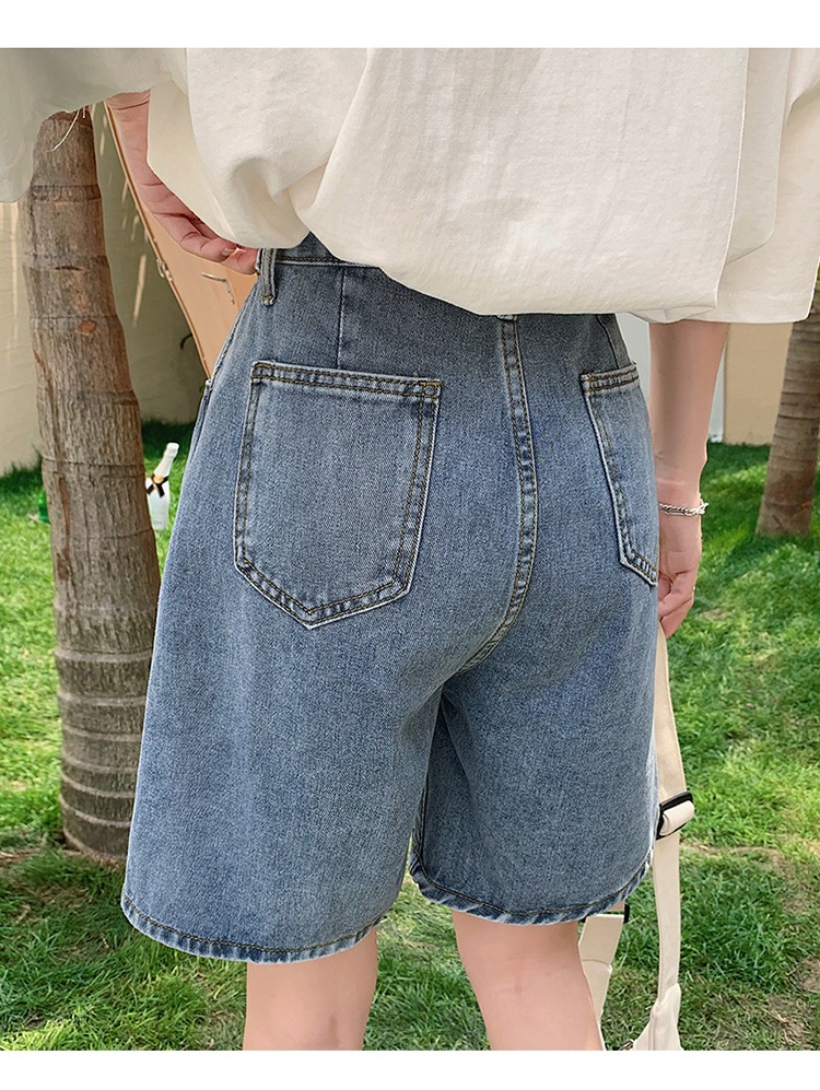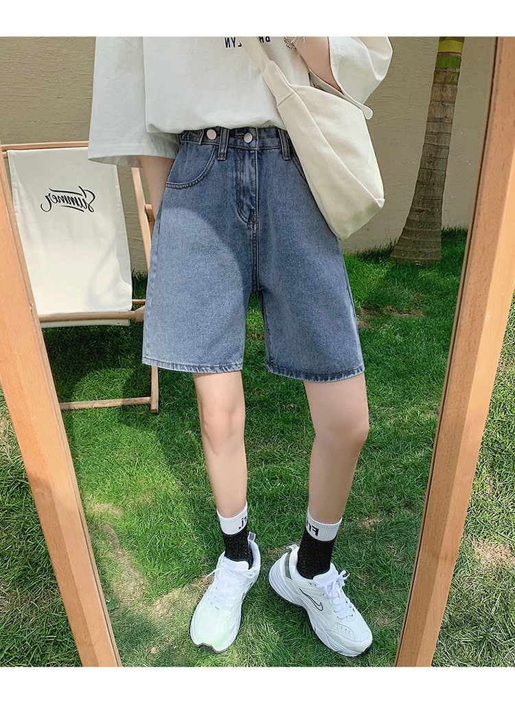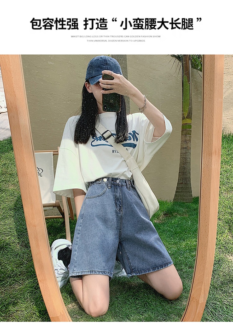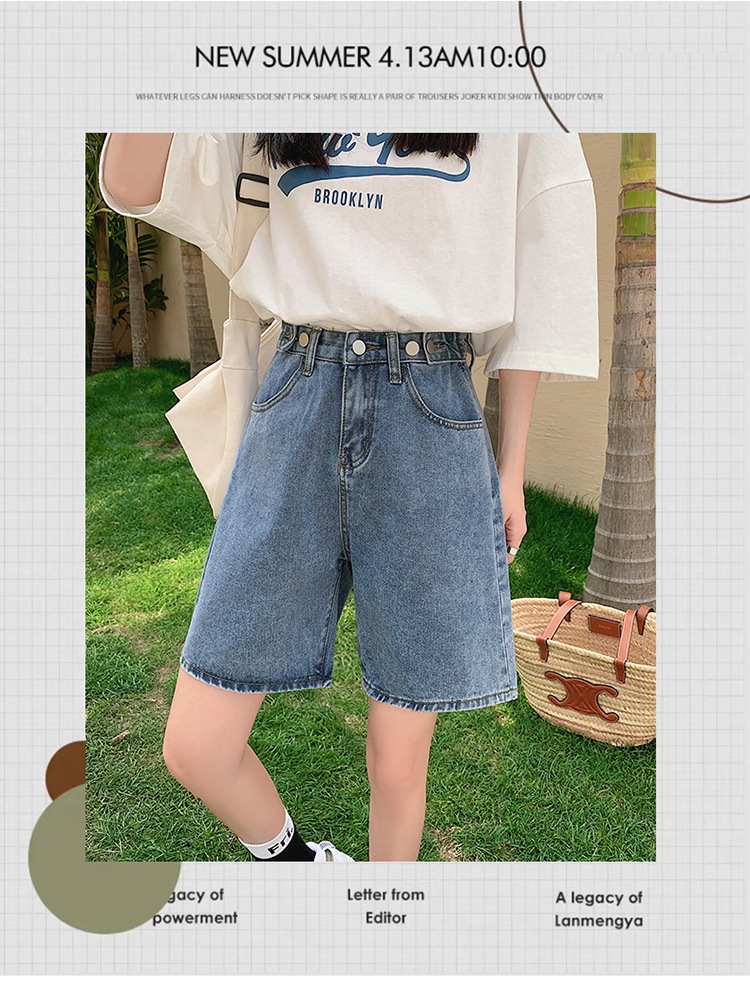 데님 반바지 여자 여름 2025 새로운 플러스 사이즈 높은 허리 느슨한 슬리밍 작은 넓은 다리 바지 중간 길이 바지스토어 가기