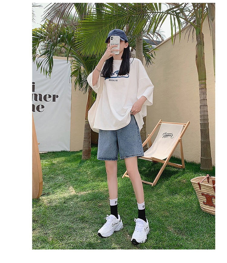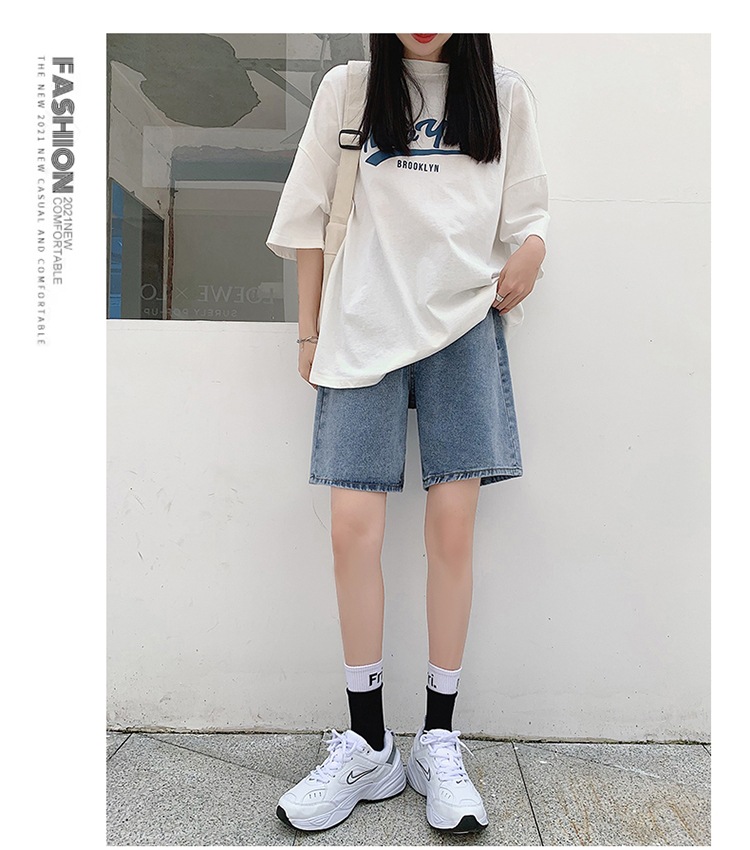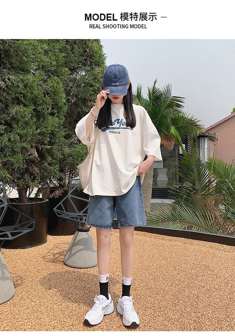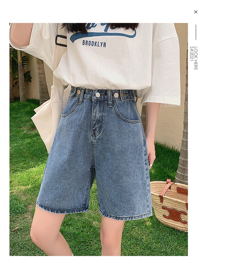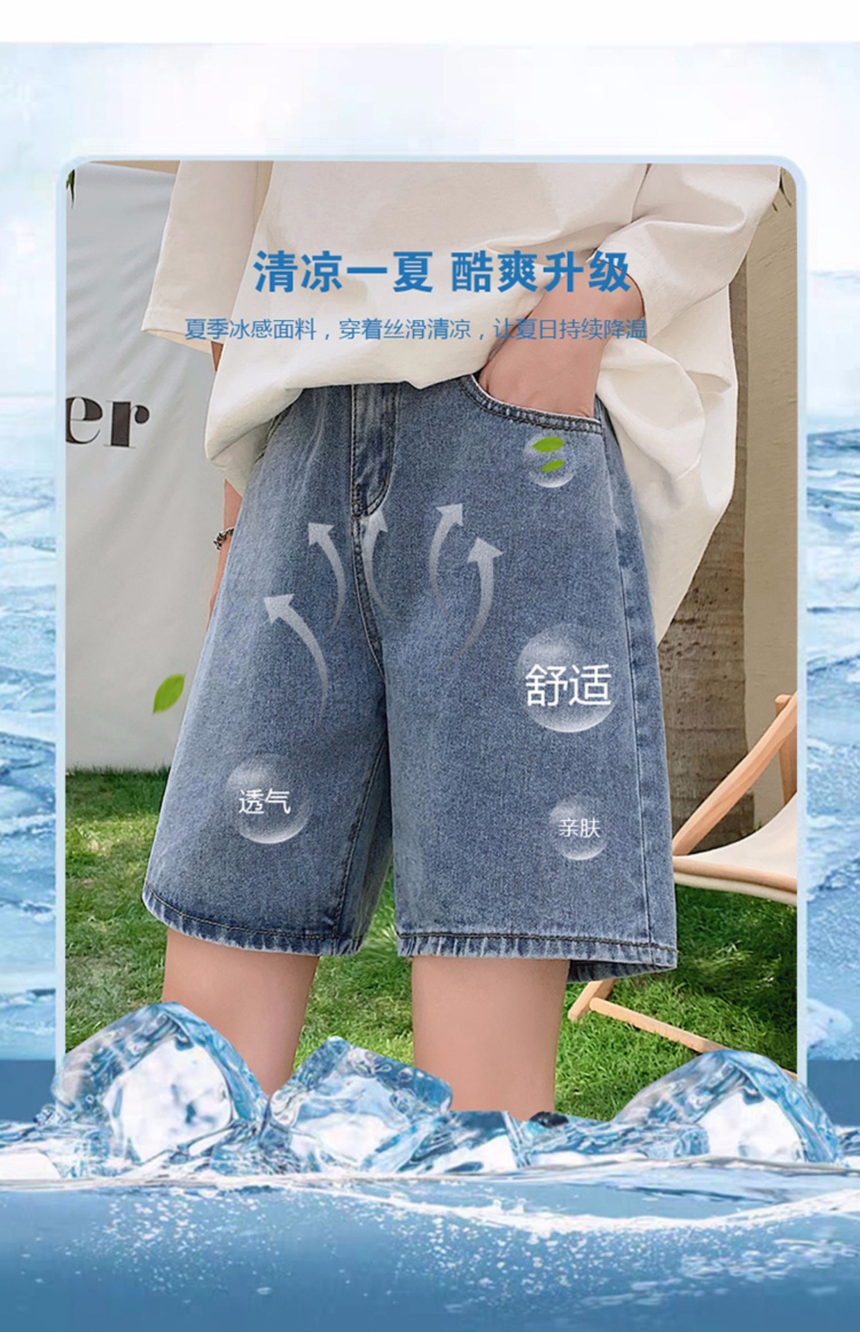데님 반바지 여자 여름 2025 새로운 플러스 사이즈 높은 허리 느슨한 슬리밍 작은 넓은 다리 바지 중간 길이 바지스토어 가기