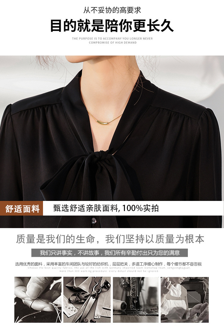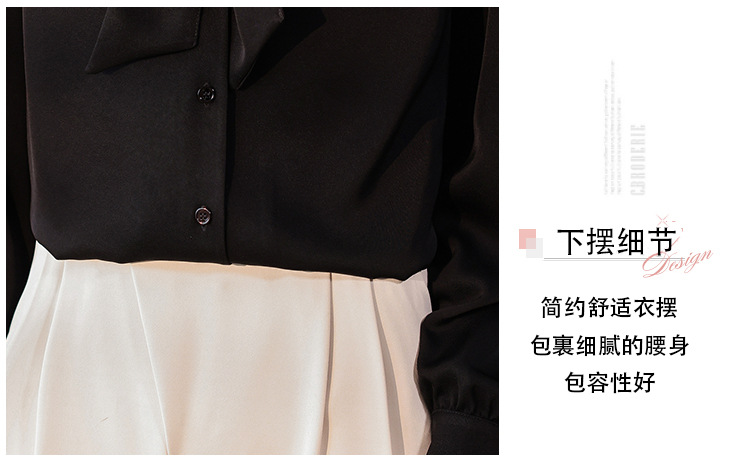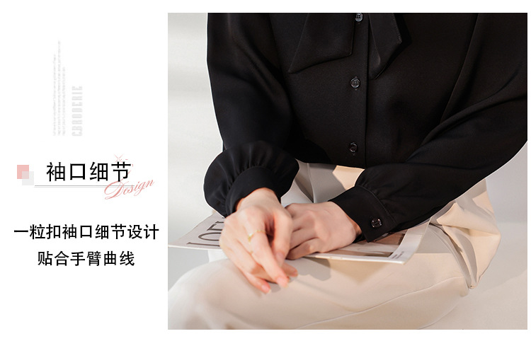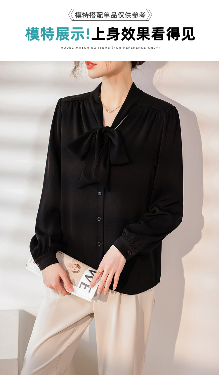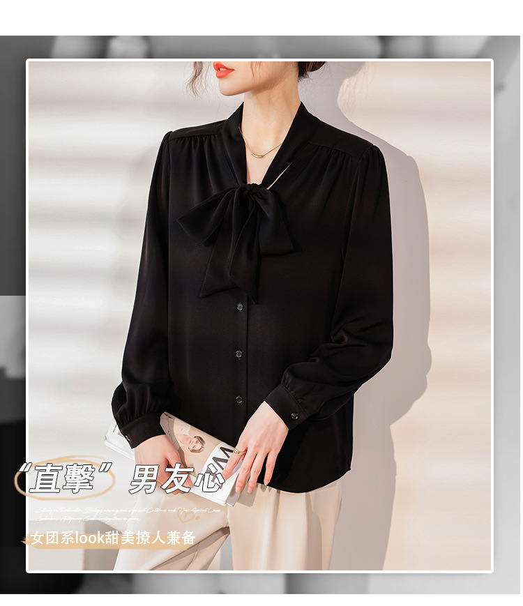 리본 셔츠 여성용 V 넥 레이스 업 보우 아세테이트 Satin 탑 가을 프로 데프 하이 엔드 프렌치 셔츠스토어 가기