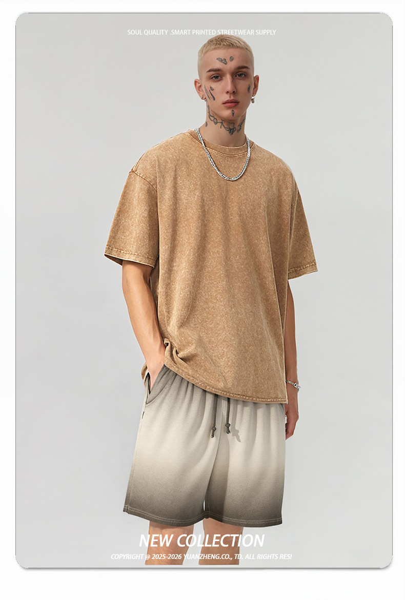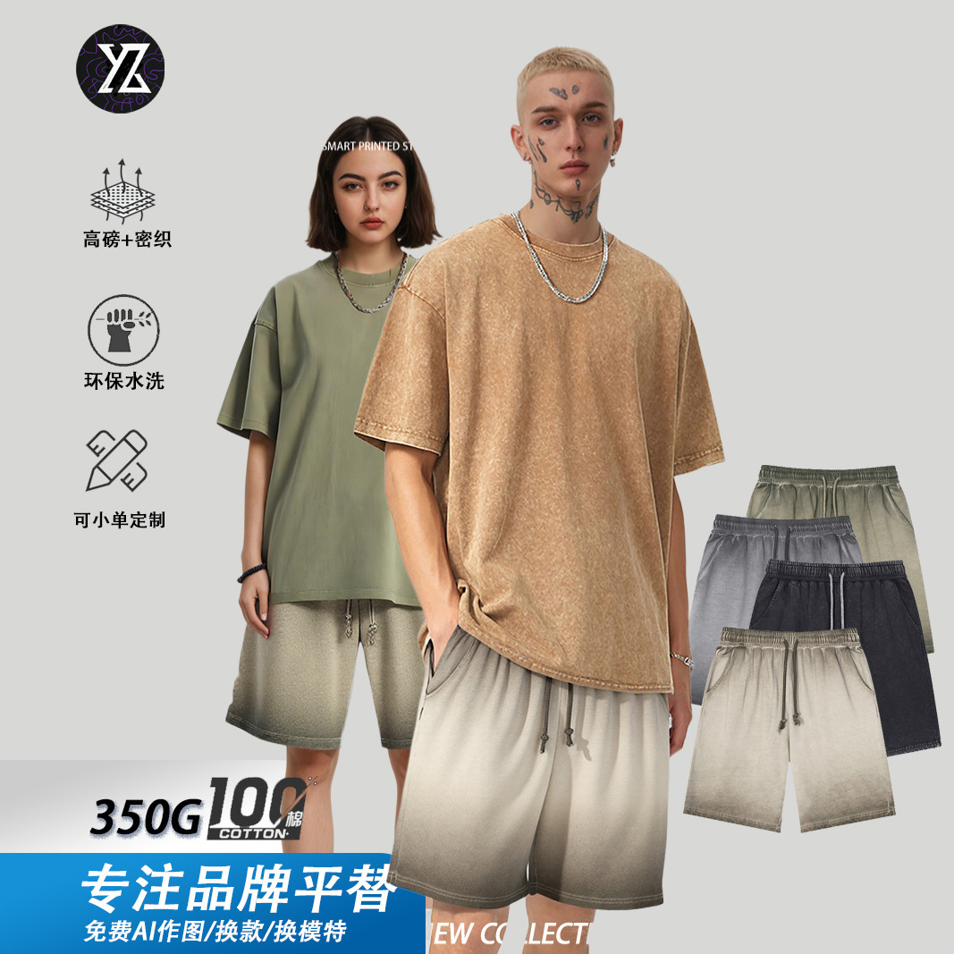 반바지 남녀 여름 두꺼운 코튼 오래 된 그라디언트 짧은 스웨트 팬츠 작업복 비치 바지 5 점 바지스토어 가기