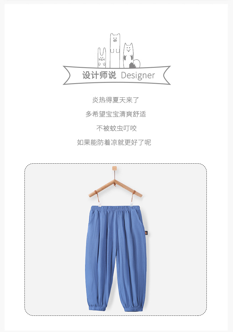 여름 어린이 통기성 단색 포켓 중소형 소년 소녀 용 느슨한 캐주얼 바지 발 묶음 에어컨 가정용 모기 방지 바지