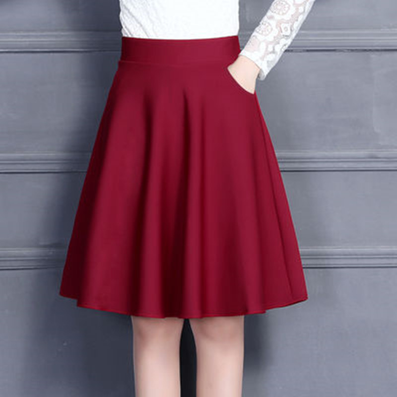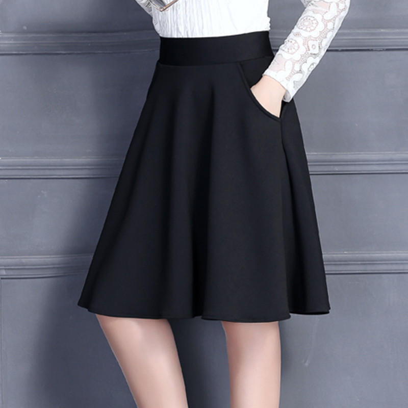 사계절 검은 주머니 치마 하프 길이 스커트 워드 댄싱 올 매치 스퀘어 댄스 스커트 착용