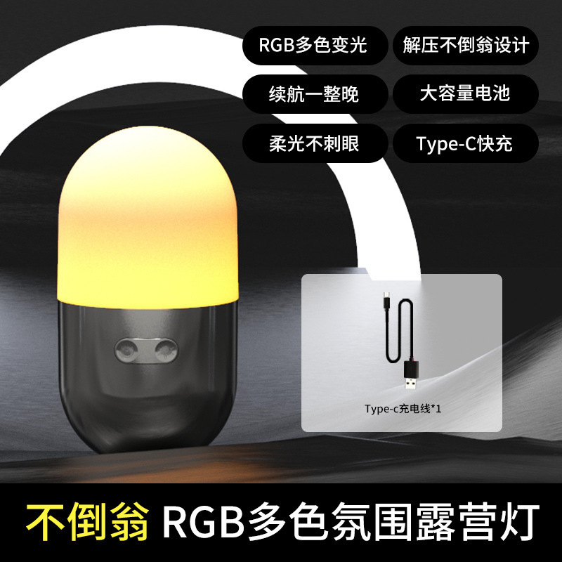 텀블러 간단한 공기 텐트 라이트 새로운 LED 캠핑 라이트 충전 휴대용 캠프 라이트 RGB 나이트 라이트 크리에이티브스토어 가기