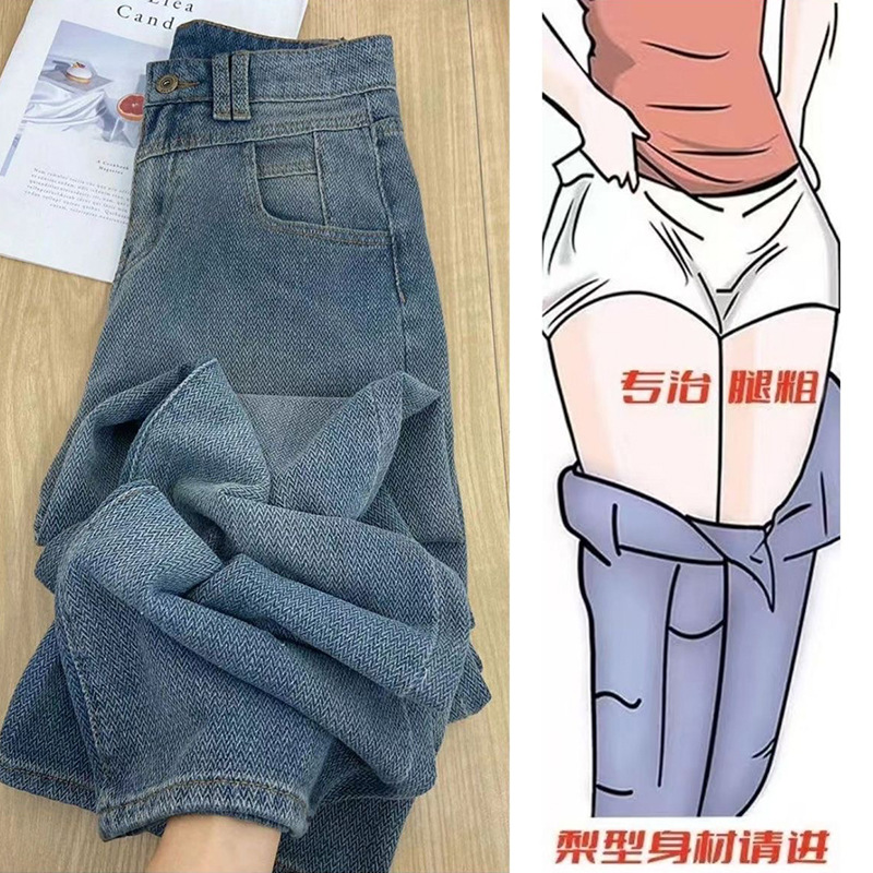 높은 허리 넓은 다리 청바지 여성의 봄과 가을 플러스 사이즈 통통녀 새로운 슬림 모양 수직 별 패턴 스트레이트 바지