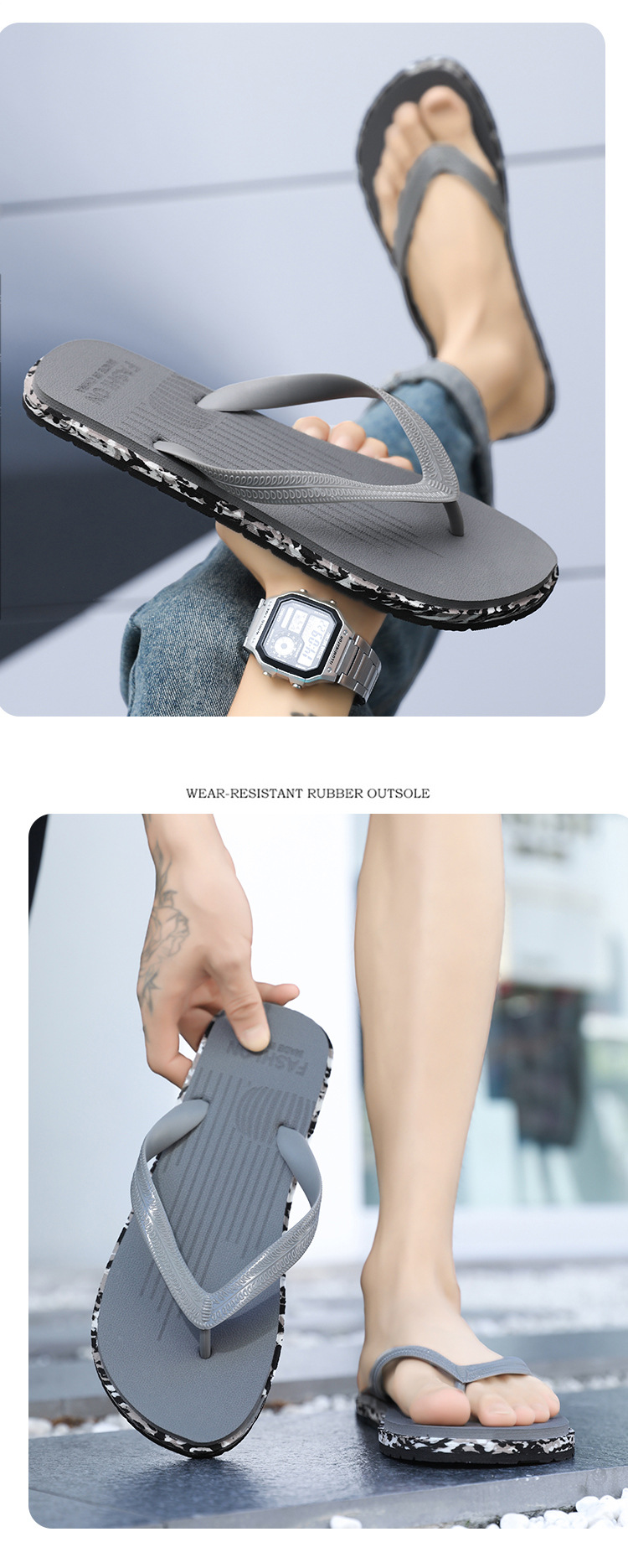 남성 여름 플립 플롭 캐주얼 내마모성 고무 플립 플롭 야외 레저 스포츠 해변 샌들