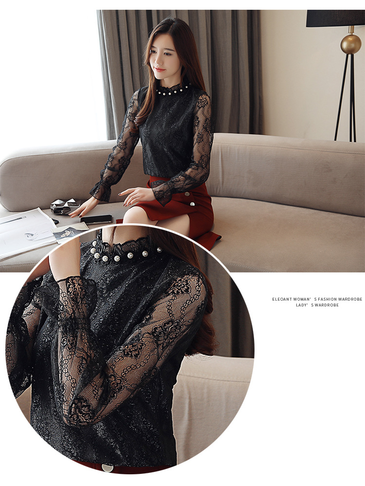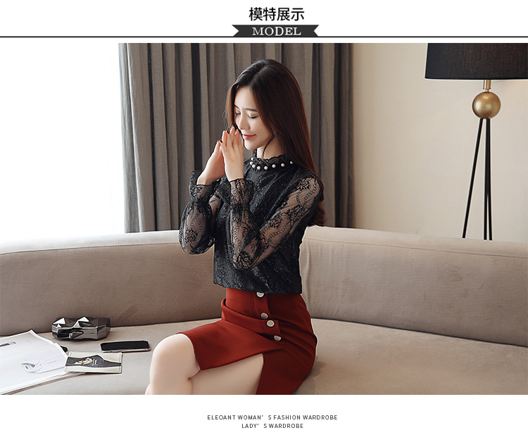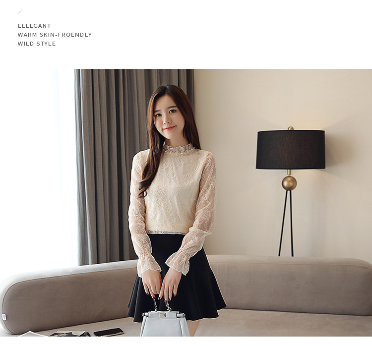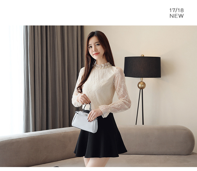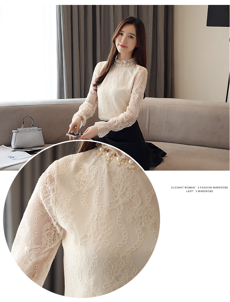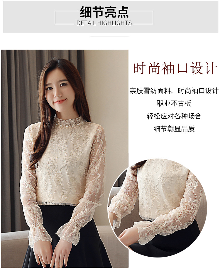재고 2025 봄과 가을 새로운 한국 패션 유럽 레이스베이스 여성용 셔츠 세련된 쉬폰 셔츠스토어 가기