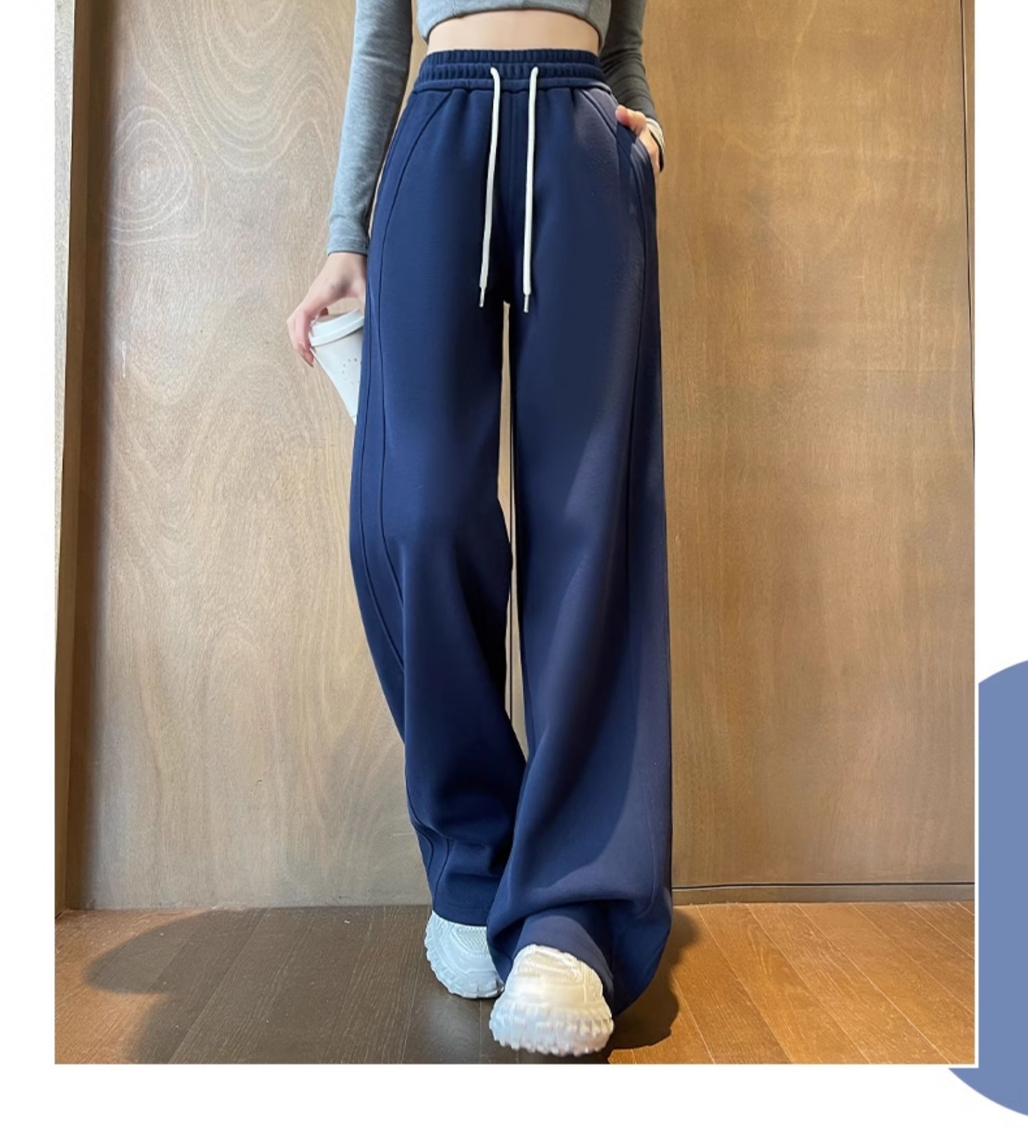 넓은 다리 바지 여성의 2025 새로운 봄과 가을 슬리밍 웨이 바지 작은 높은 허리 네이비 캐주얼 바지