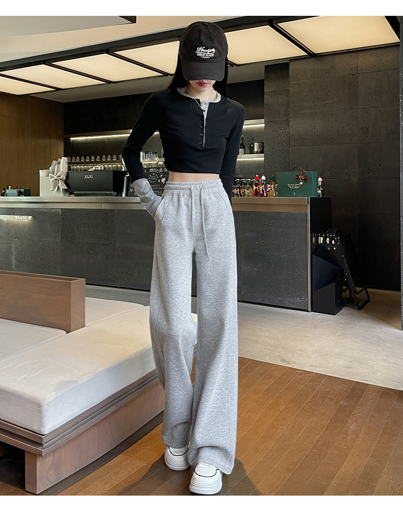 넓은 다리 바지 여성의 2025 새로운 봄과 가을 슬리밍 웨이 바지 작은 높은 허리 네이비 캐주얼 바지스토어 가기