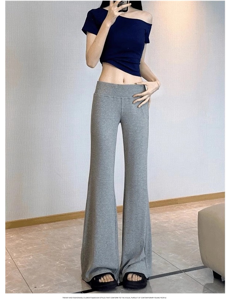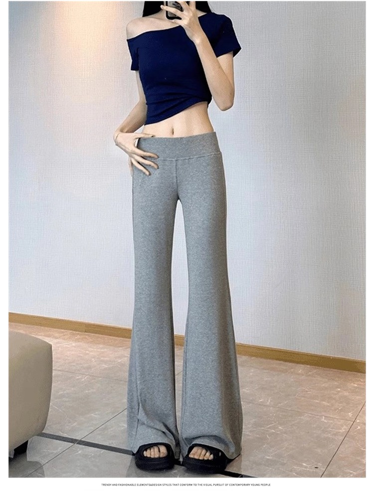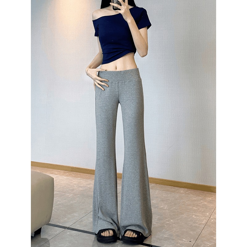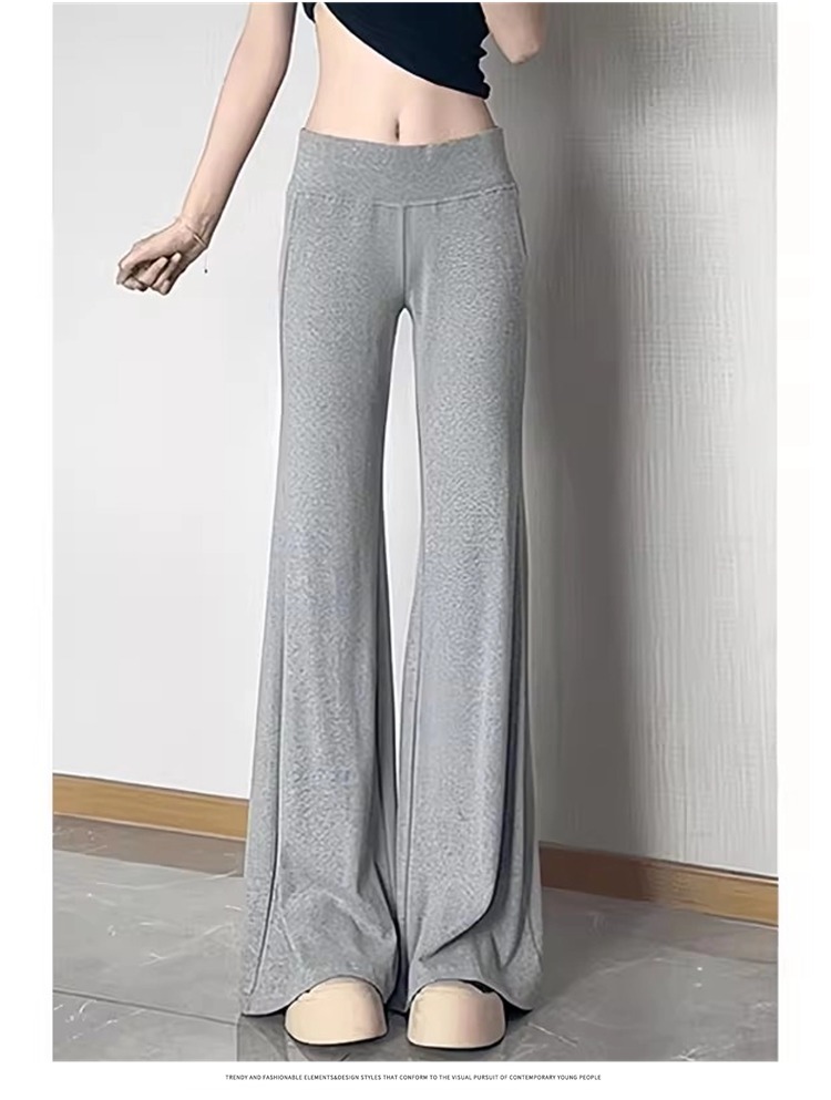 회색 니트 마이크로 와이드 다리 바지 여성용 봄과 가을 새로운 낮은 허리 스파이스 소녀 캐주얼 바지 스트레이트 다리 바지