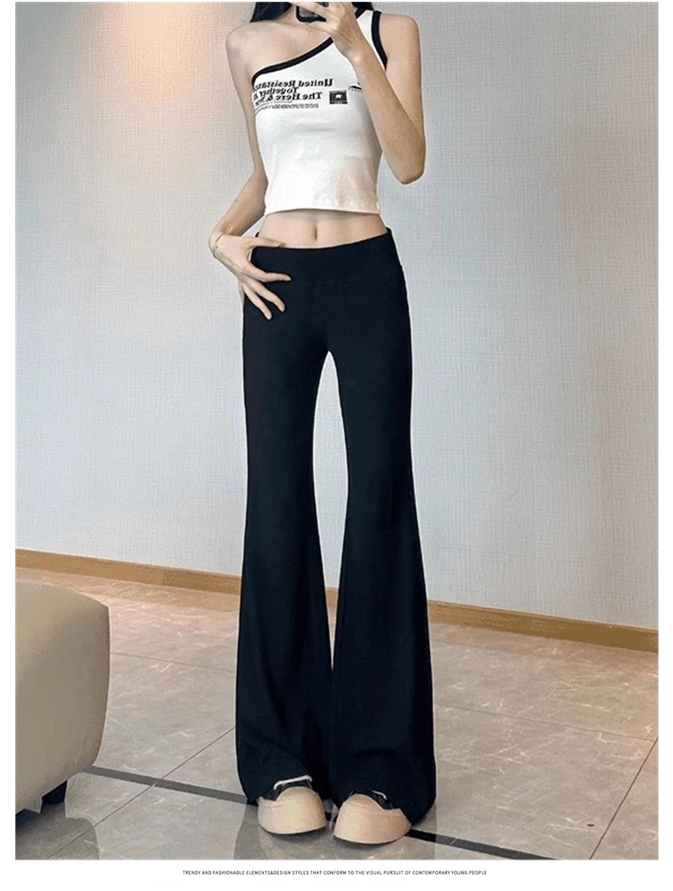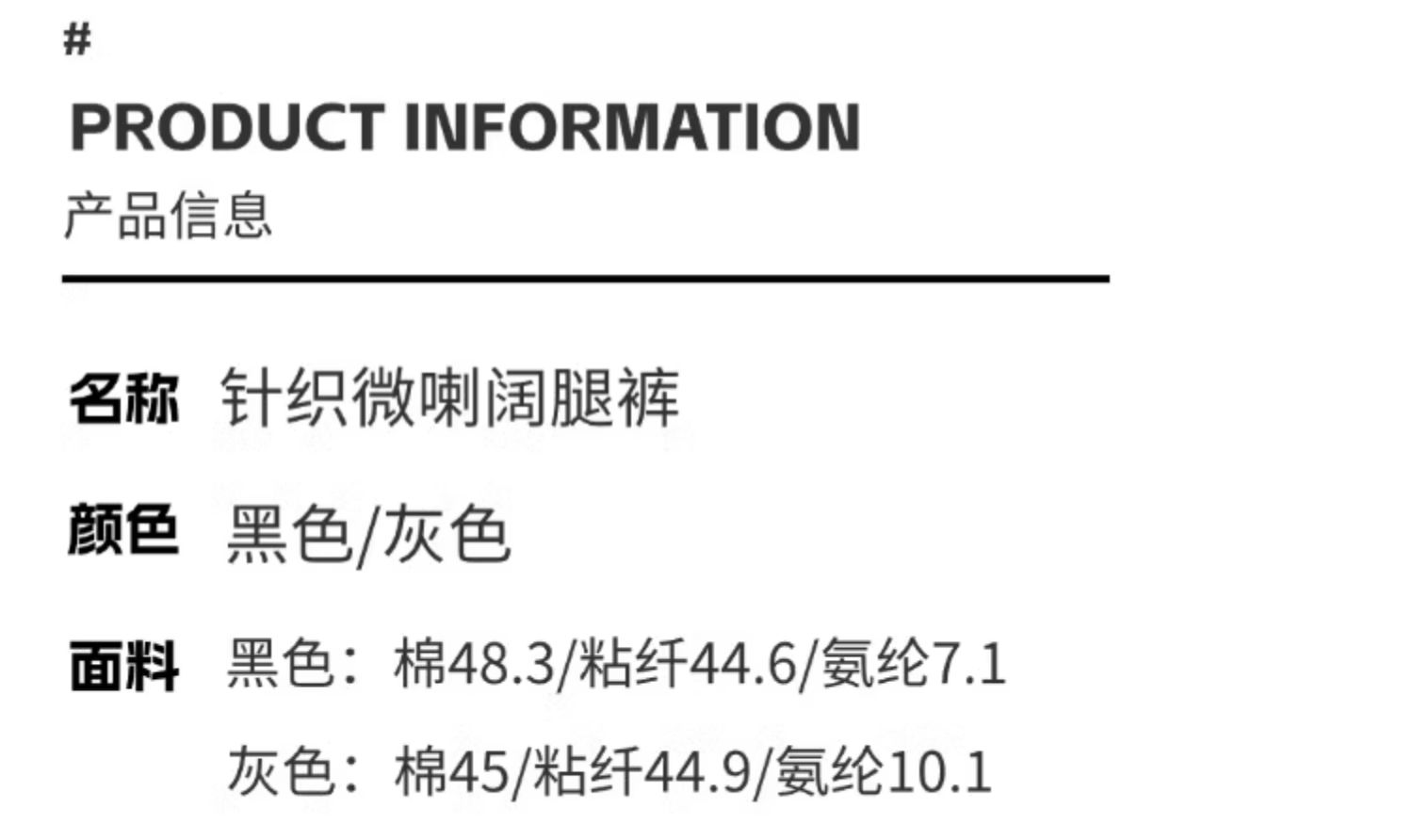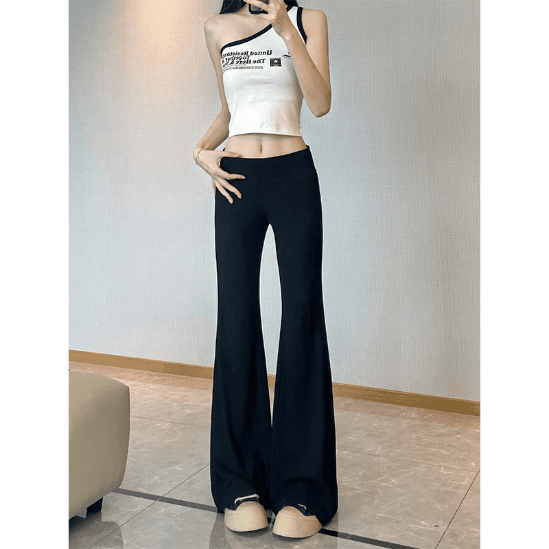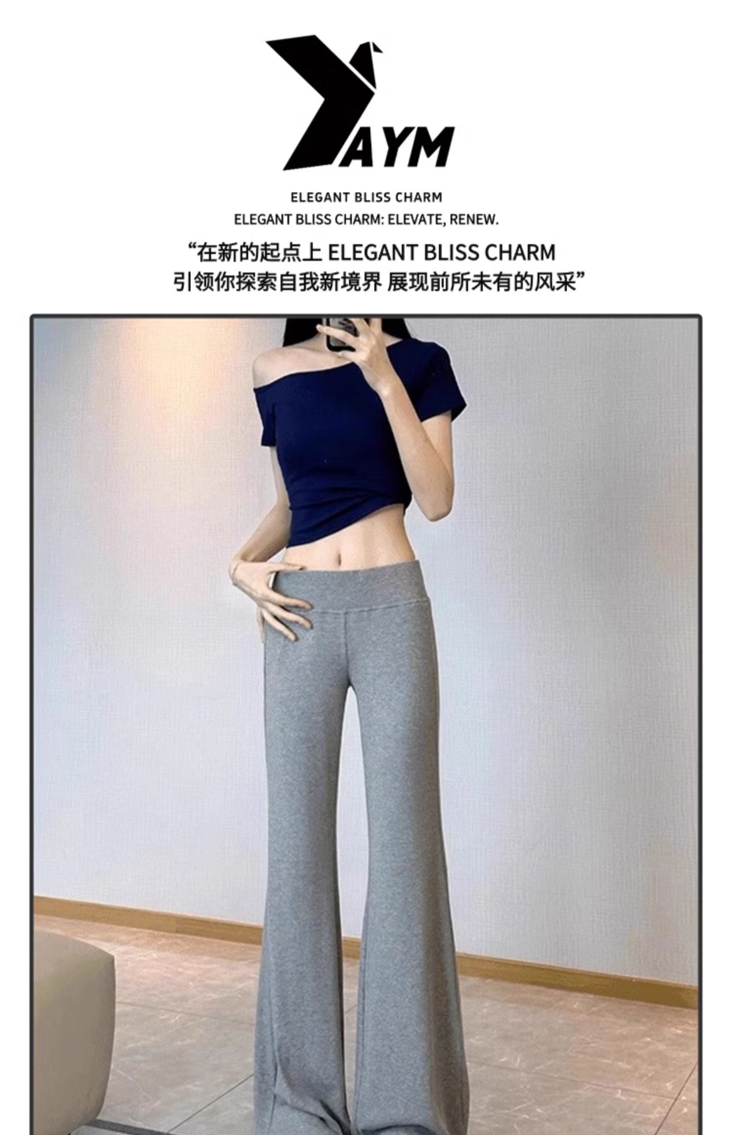 회색 니트 마이크로 와이드 다리 바지 여성용 봄과 가을 새로운 낮은 허리 스파이스 소녀 캐주얼 바지 스트레이트 다리 바지