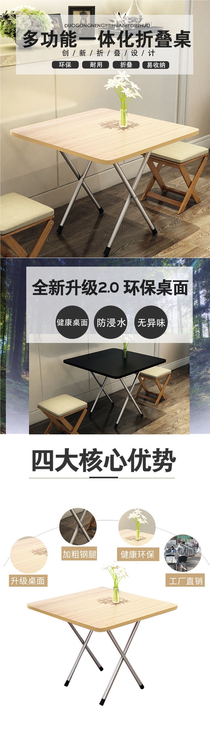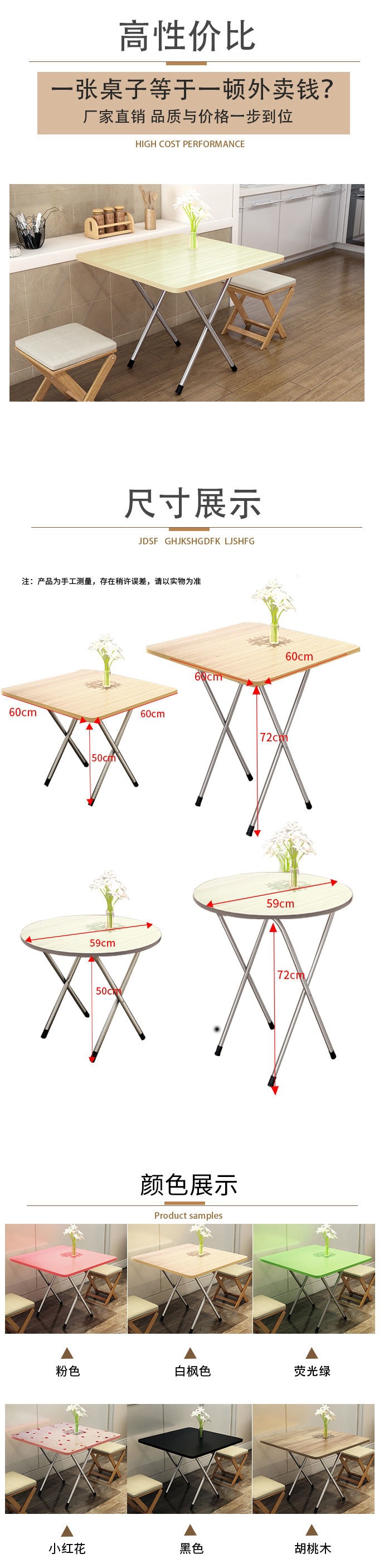 접이식 테이블 스퀘어 테이블 간단한 휴대용 야외 스톨 테이블 다이닝 테이블 간단한 다이닝 테이블 가정용 직사각형 다이닝 스몰 사이즈