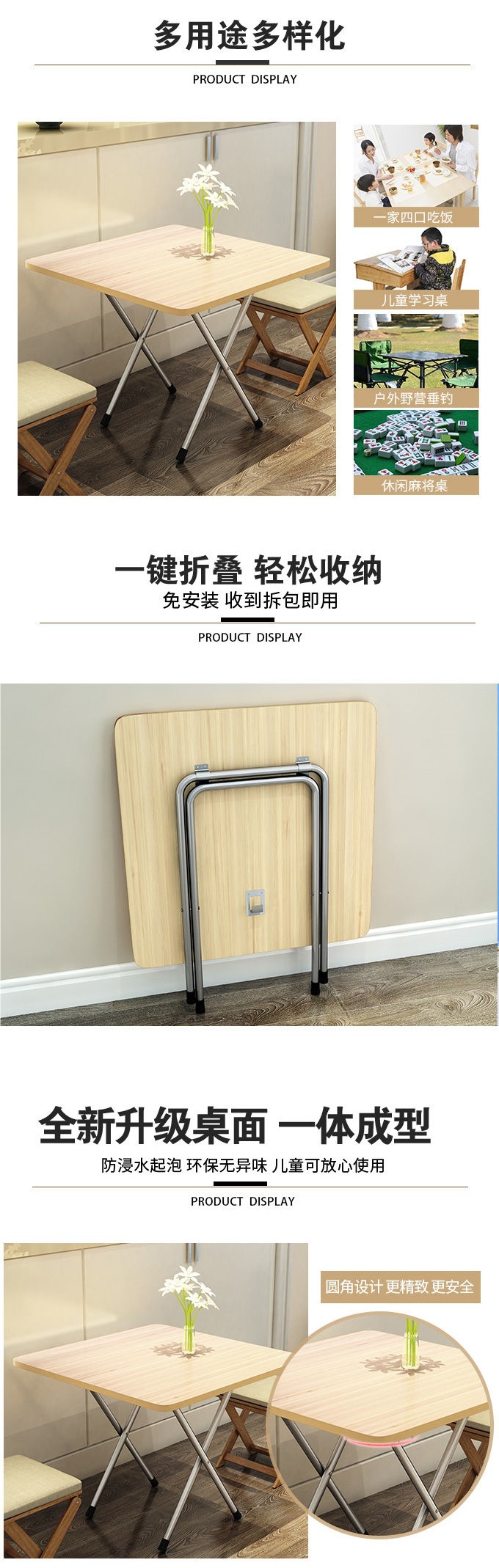 접이식 테이블 스퀘어 테이블 간단한 휴대용 야외 스톨 테이블 다이닝 테이블 간단한 다이닝 테이블 가정용 직사각형 다이닝 스몰 사이즈스토어 가기
