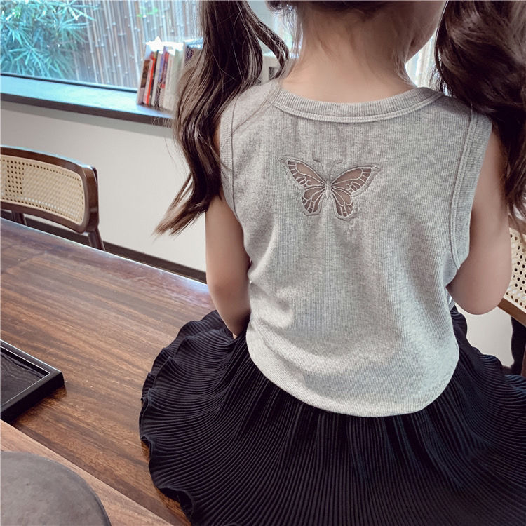 소녀 조끼 여름 2025 새로운 스타일 어린이 인터넷 레드 나비 탑 어린 소녀의 민소매 내베이스 셔츠