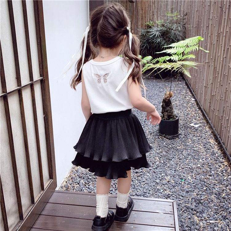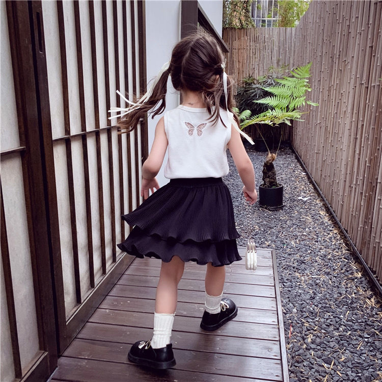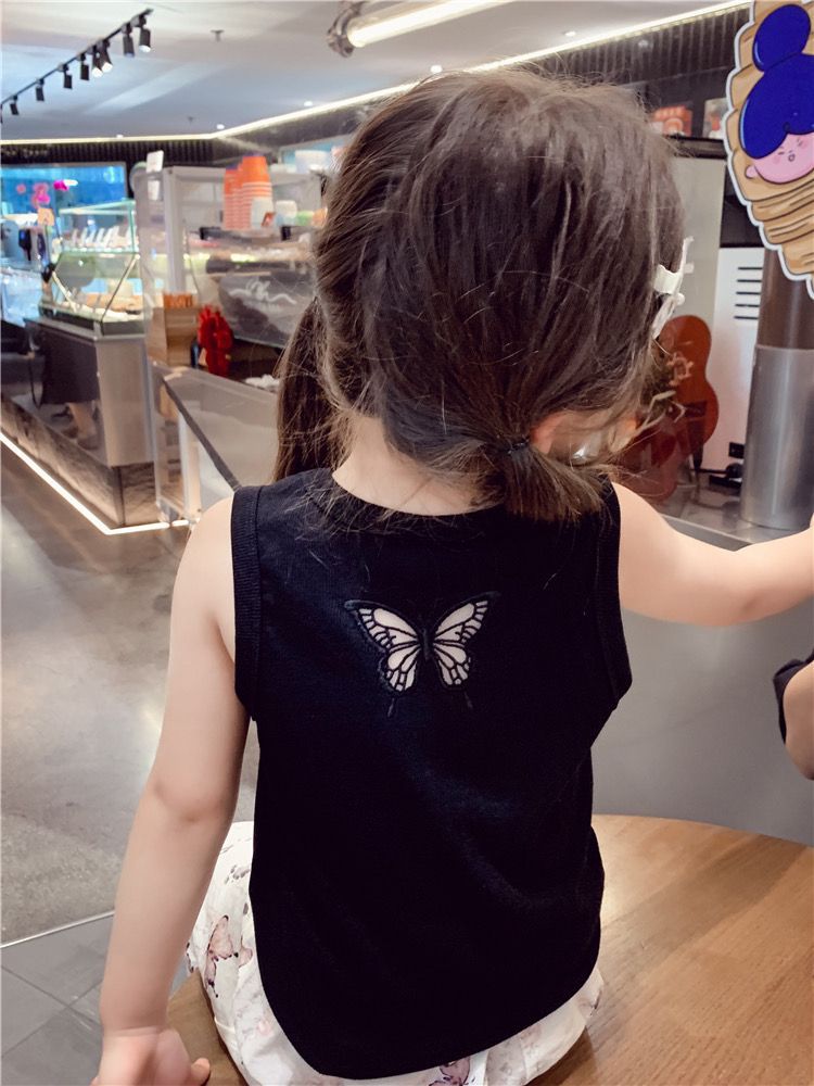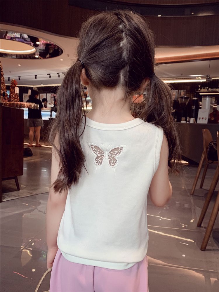 소녀 조끼 여름 2025 새로운 스타일 어린이 인터넷 레드 나비 탑 어린 소녀의 민소매 내베이스 셔츠스토어 가기