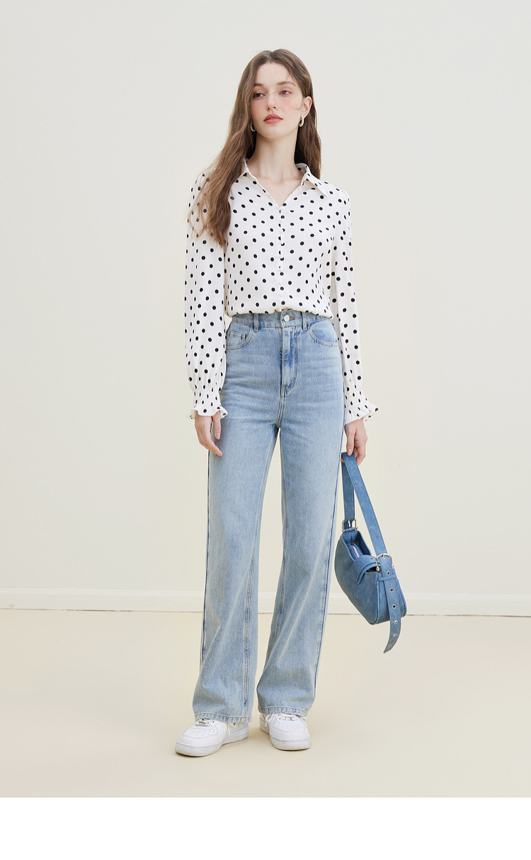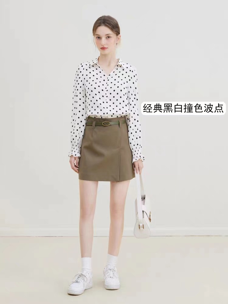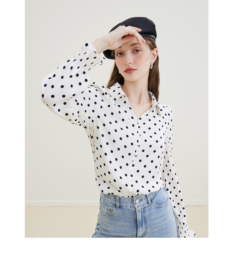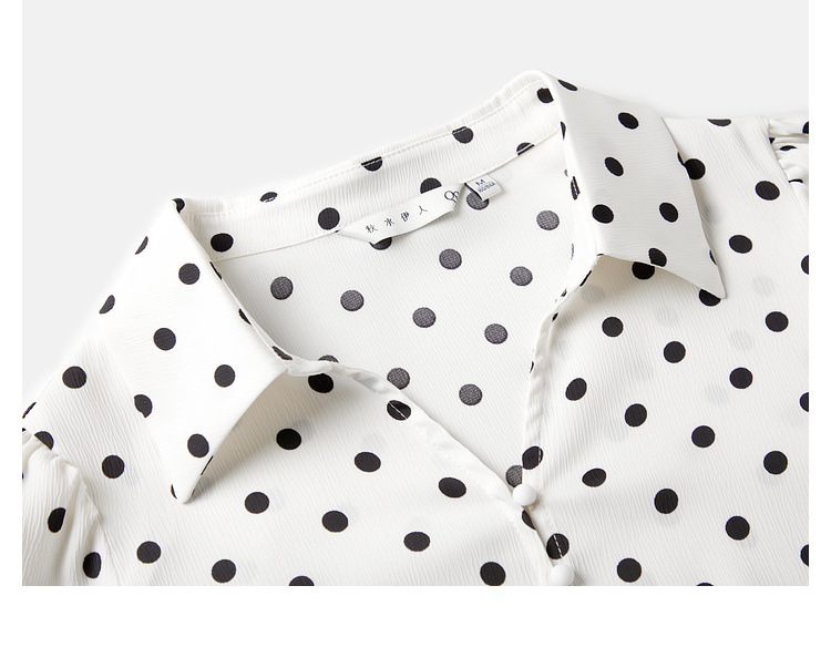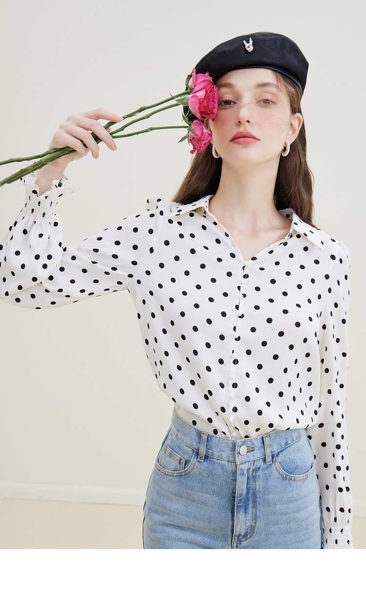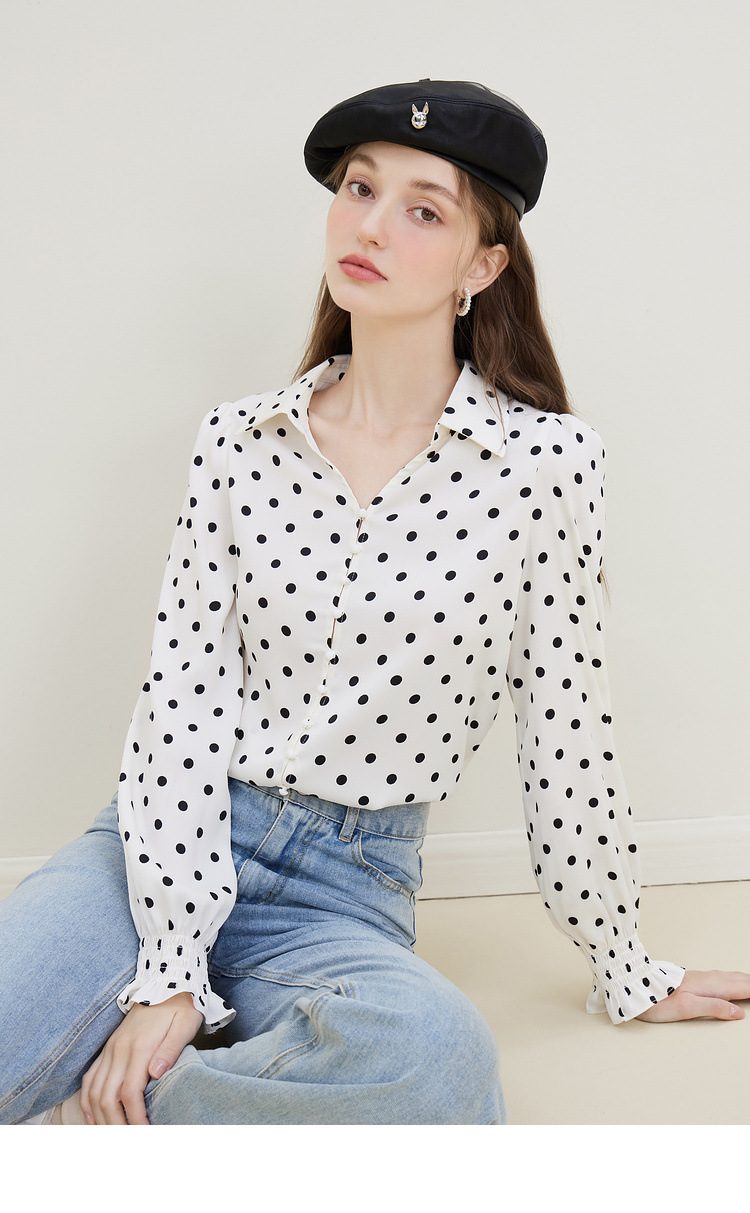 하이 엔드 V 넥 클래식 블랙과 화이트 폴라 닷 긴팔 셔츠 여자 2024 가을 새 여자 간단한 올매치 베이스 셔츠스토어 가기