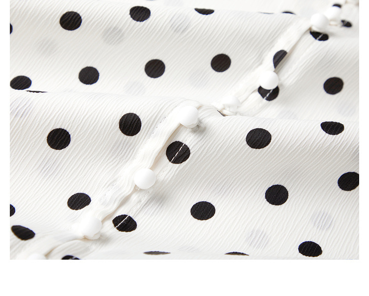 하이 엔드 V 넥 클래식 블랙과 화이트 폴라 닷 긴팔 셔츠 여자 2024 가을 새 여자 간단한 올매치 베이스 셔츠