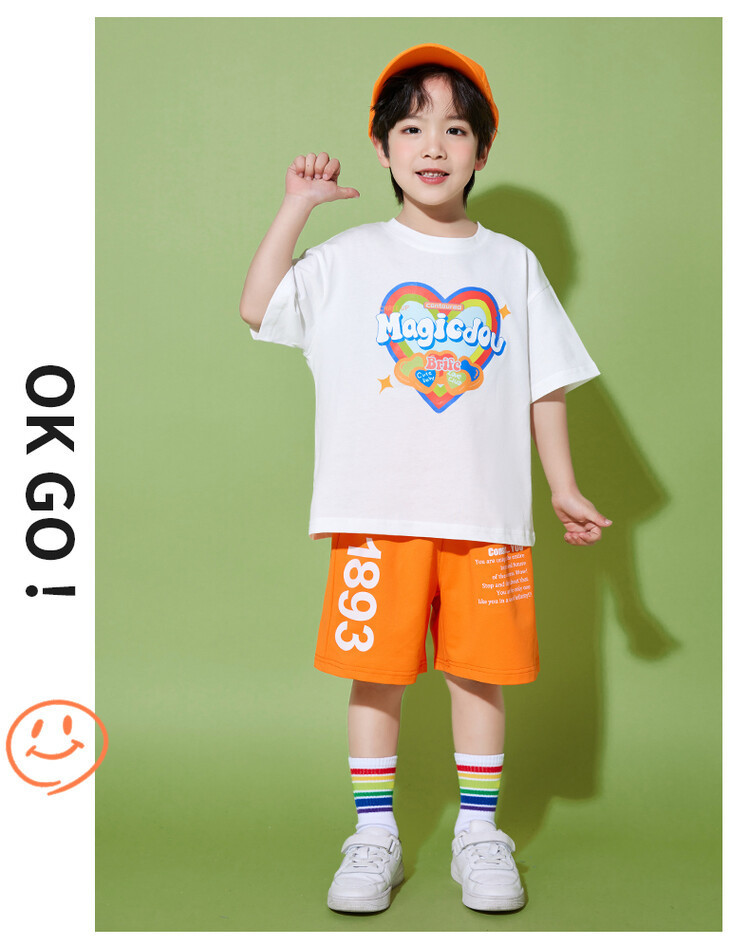 • 오렌지 러브 반팔 + 흰색 반바지 + 무지개 양말