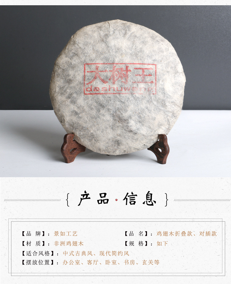 Pu'er 티 케이크 브래킷 장식 플레이트 선반 사진 프레임 솔리드 우드 치킨 날개 나무 장식 랙 크래프트 플레이트 플레이트 랙