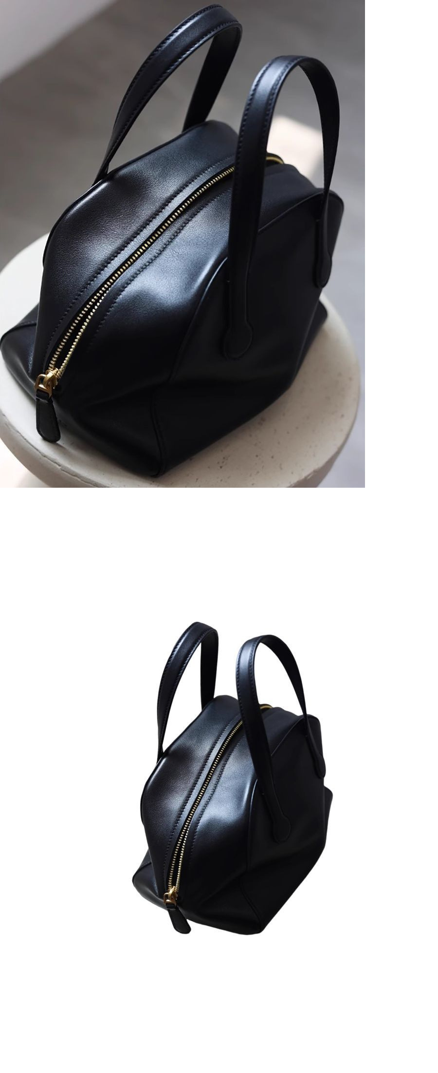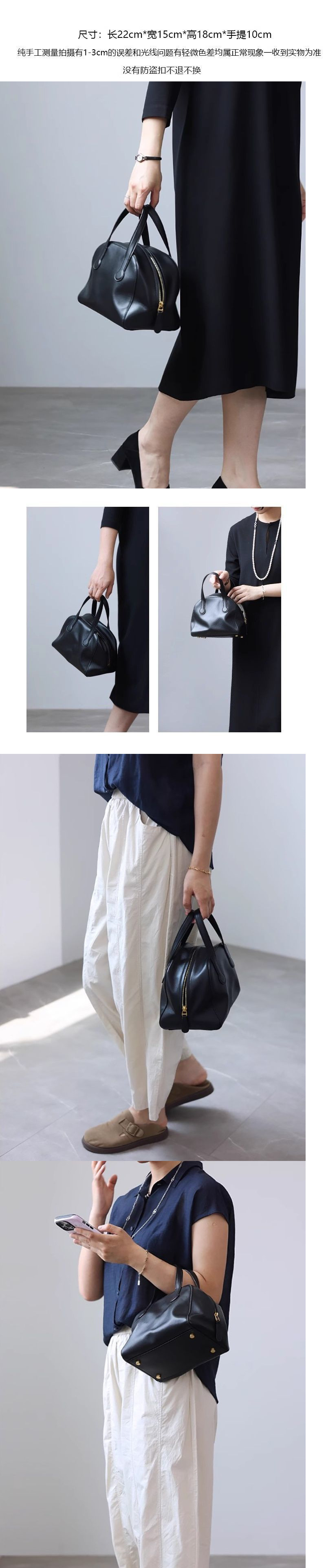 휴대용 보스턴 가방 여성 2025 새로운 블랙 소프트 가죽 고급 필러 볼링 베개 가방스토어 가기