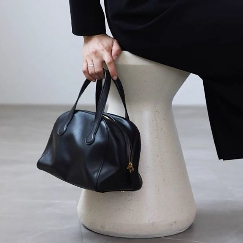 휴대용 보스턴 가방 여성 2025 새로운 블랙 소프트 가죽 고급 필러 볼링 베개 가방