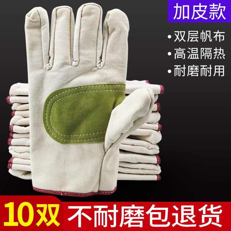 노동 보호, 내마모성 작업, 고온 저항 및 안티 스케일링 남성용 전기 용접 장갑을위한 4 개의 피부 두꺼운 이중층 캔버스 장갑스토어 가기