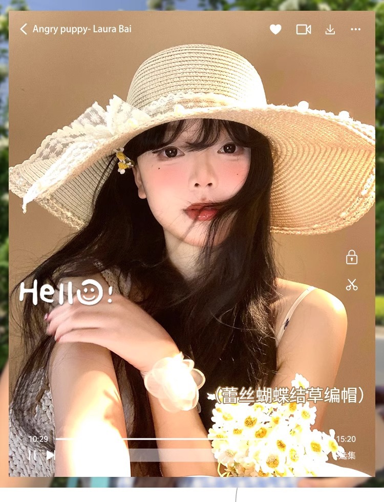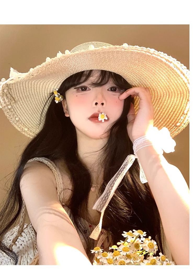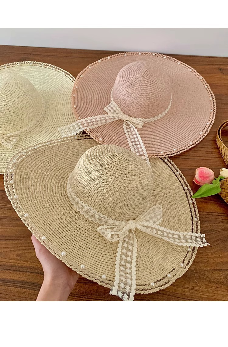 프랑스 스타일 진주 레이스 밀짚 모자 여성의 여름 큰 브림 해변 휴일 활 태양 모자 선 스크린 모자스토어 가기