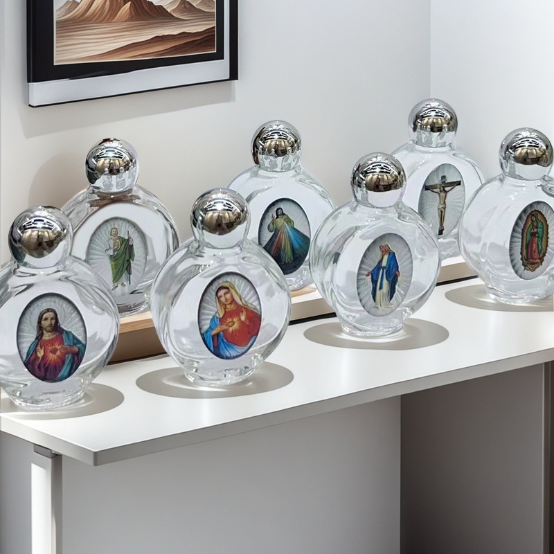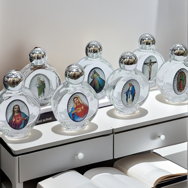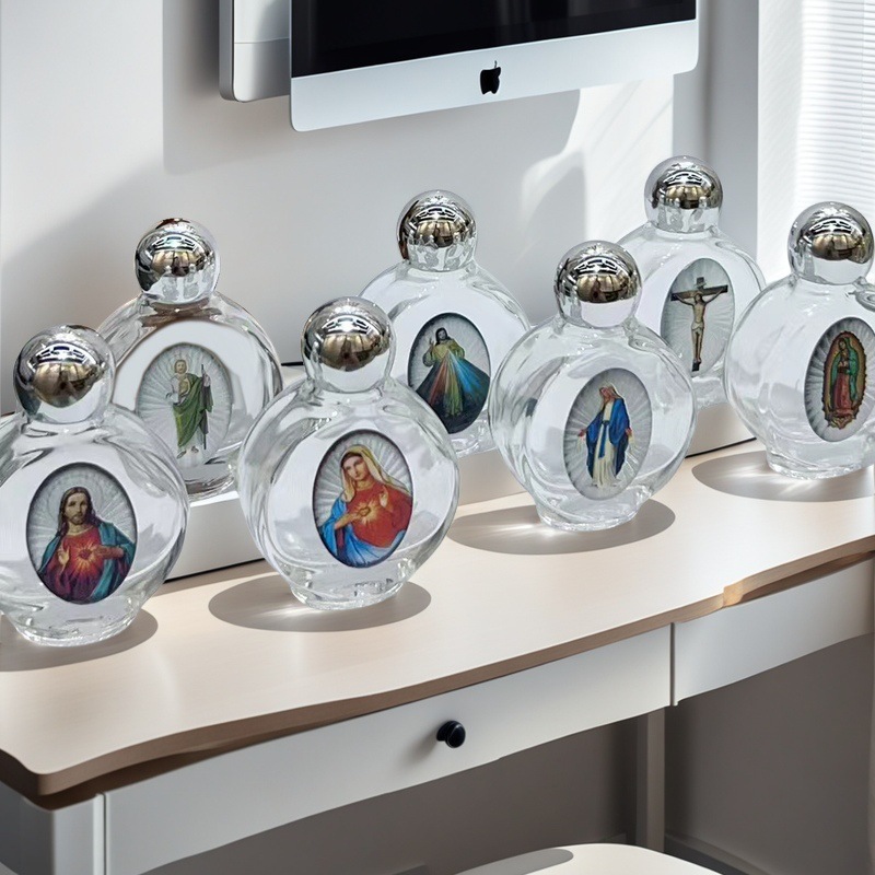 국경 간 휴대용 크리스탈 구호 성수 병 유리 합금 보석 장식품