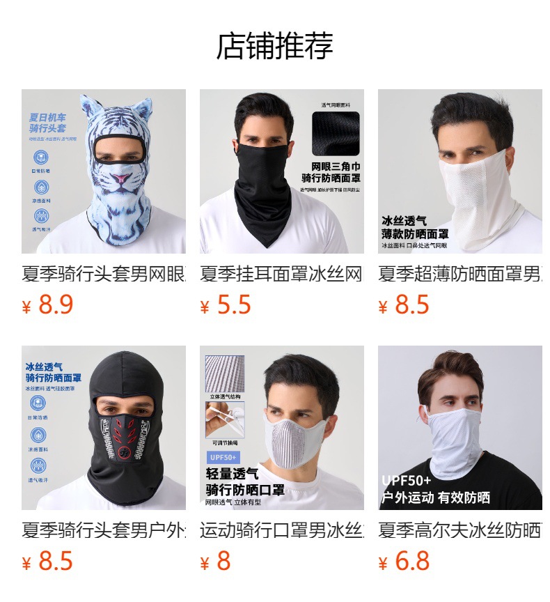 야외 스포츠 선스크린 마스크 남자 여름 아이스 실크 통기성 승마 마스크 여자 오토바이 얇은 귀 매달려 삼각형 수건스토어 가기